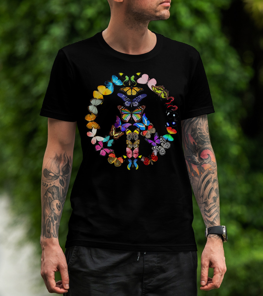 Peace Sign Butterflies 1960s Vibes Rainbow Colors T-Shirt