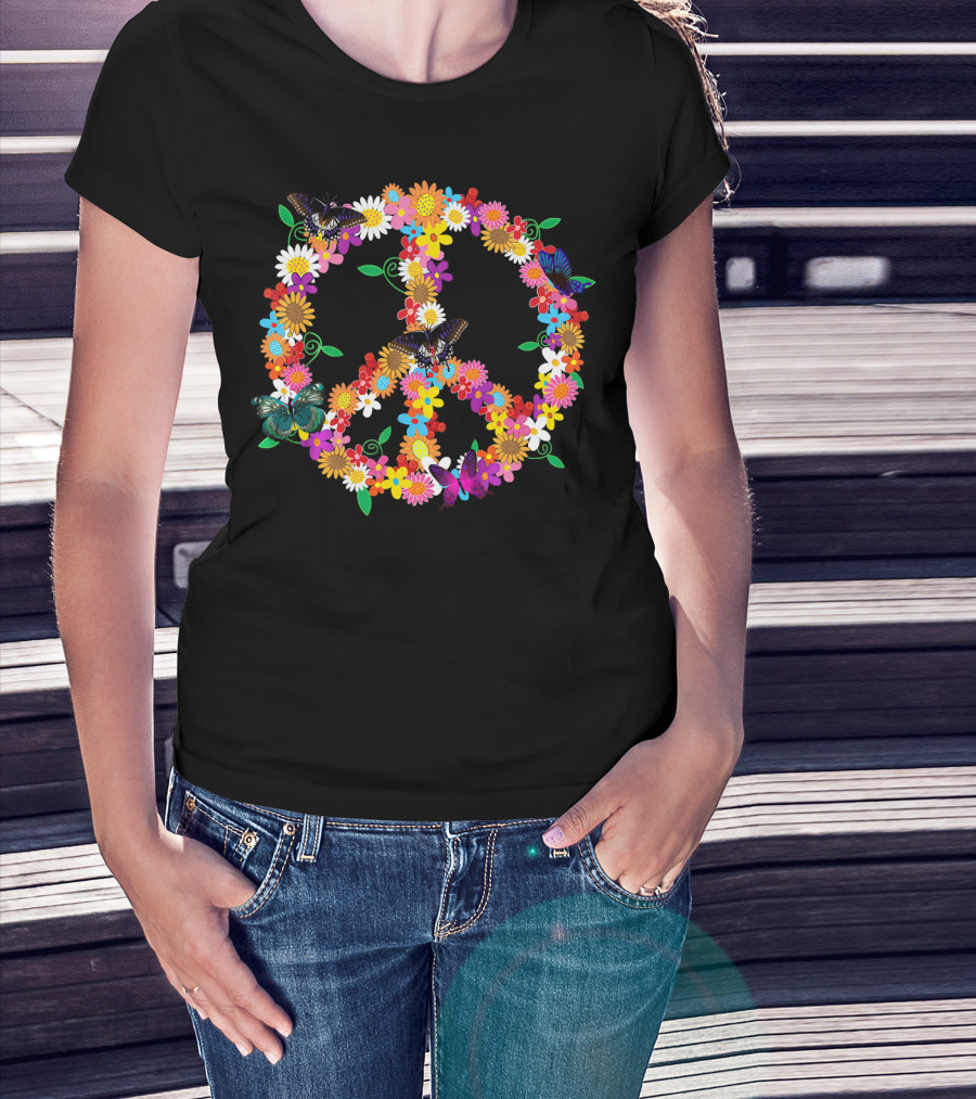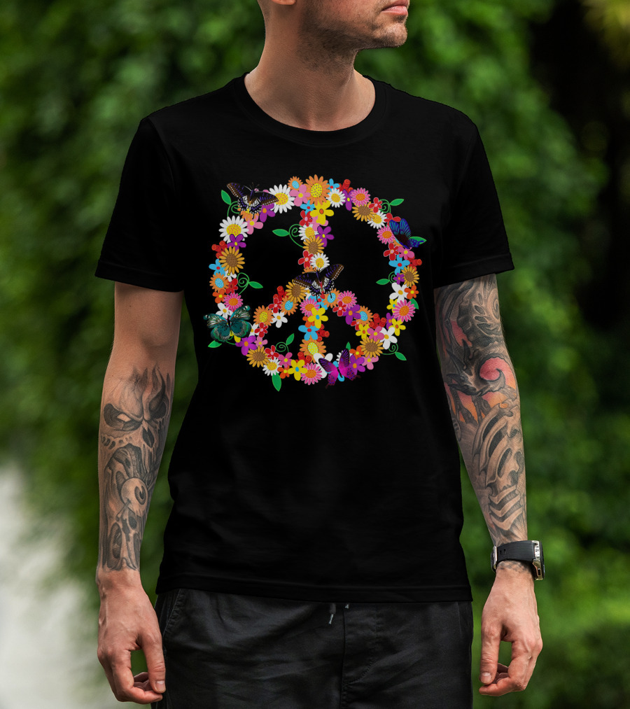 Fluttering Spring Flowers Peace Sign T-Shirt
