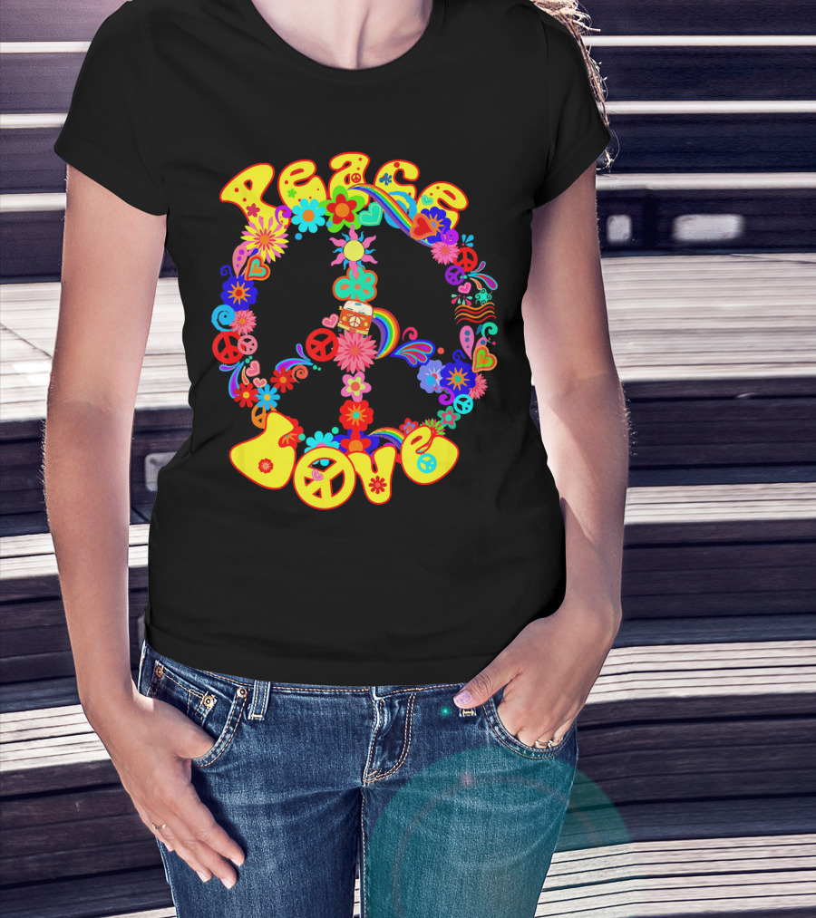The Peace Love Hippie Peace Sign Groovy 60s 70s Flower Power T-shirt is designed for everyday wear and a consistent fit. Fabric is pre-shrunk ring-spun cotton with durable stitching. See the size chart below for exact measurements.