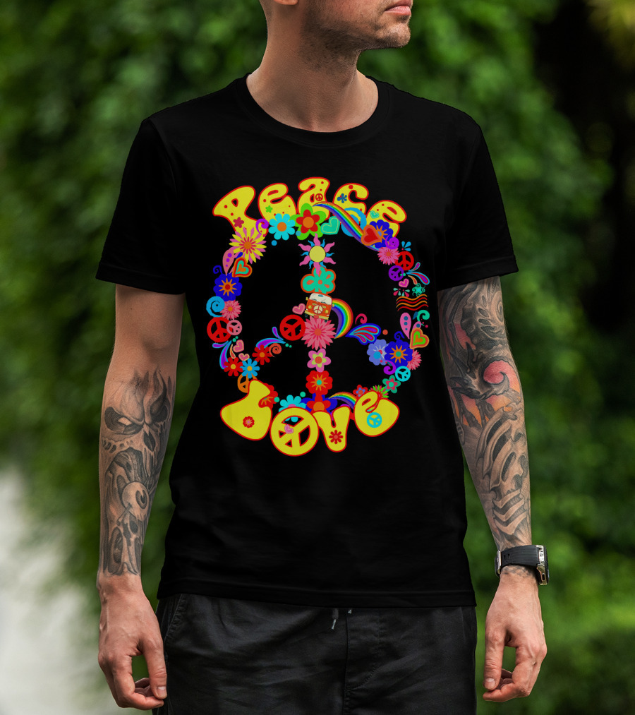 Peace Love Hippie Peace Sign Groovy 60s 70s Flower Power T-Shirt