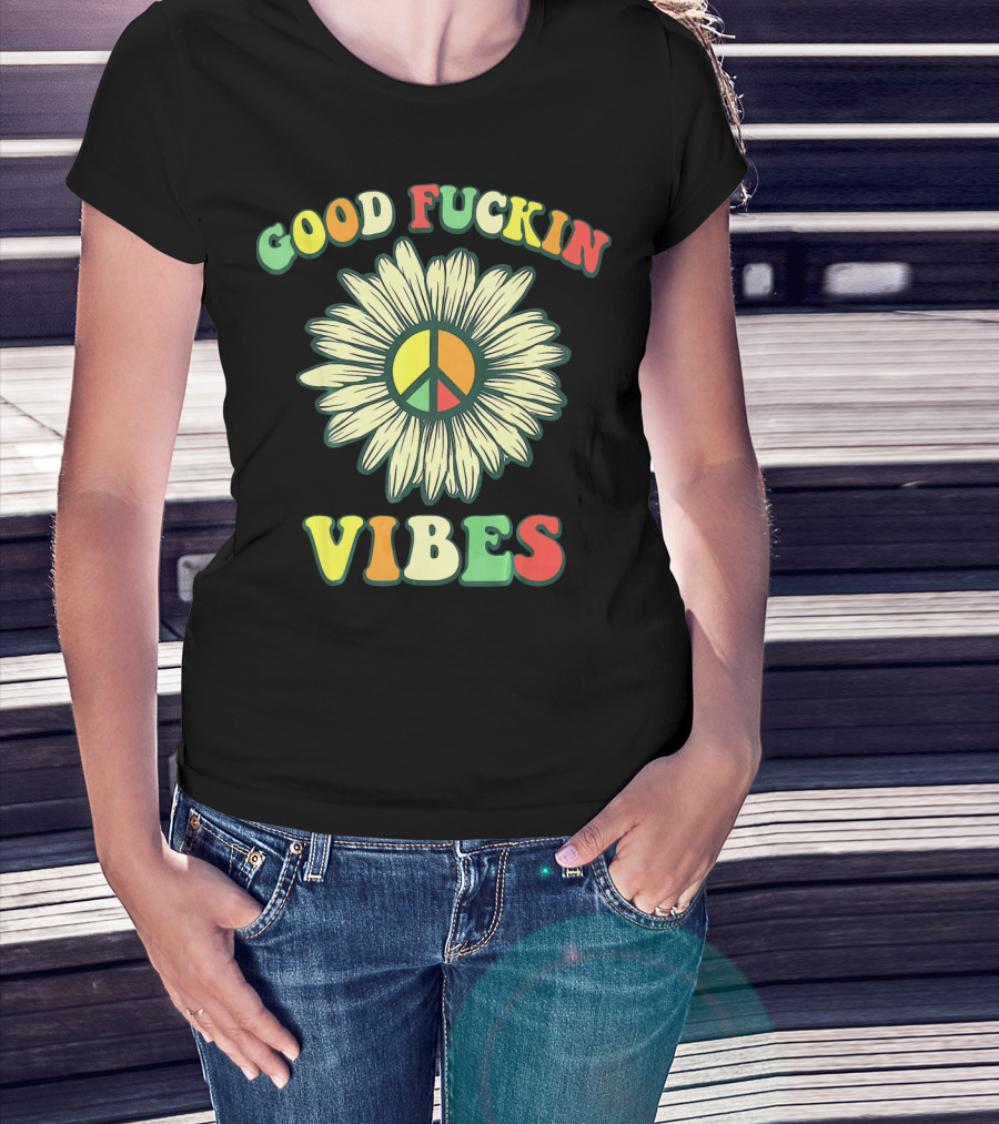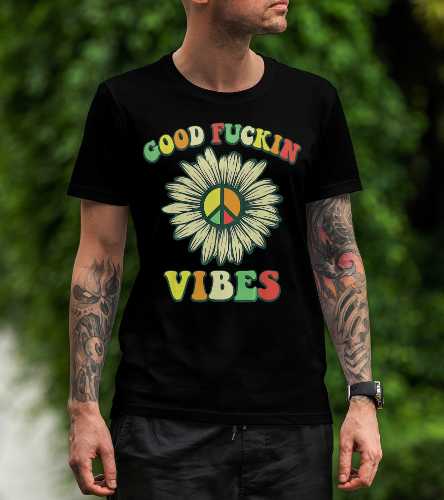 Good Fuckin Vibes Sunflower Peace Hippie Boho T-Shirt