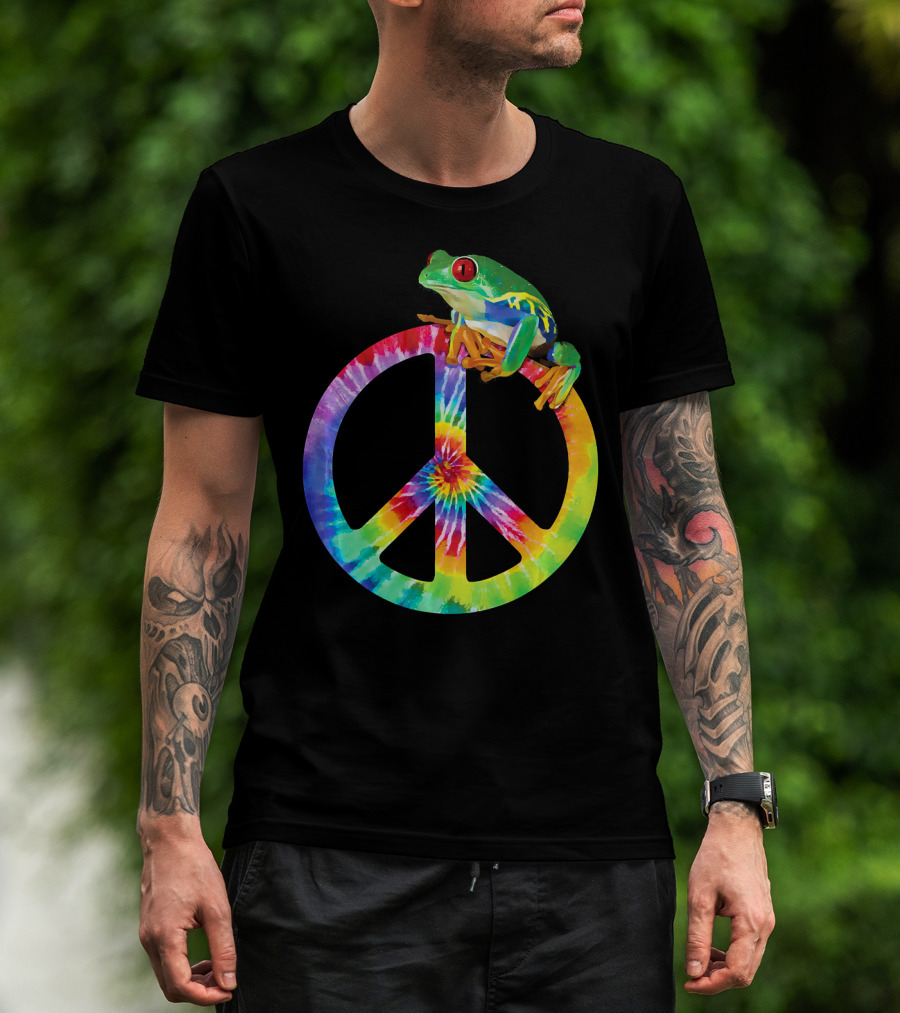 Tie Dye Tree Frog On Peace Sign T-Shirt