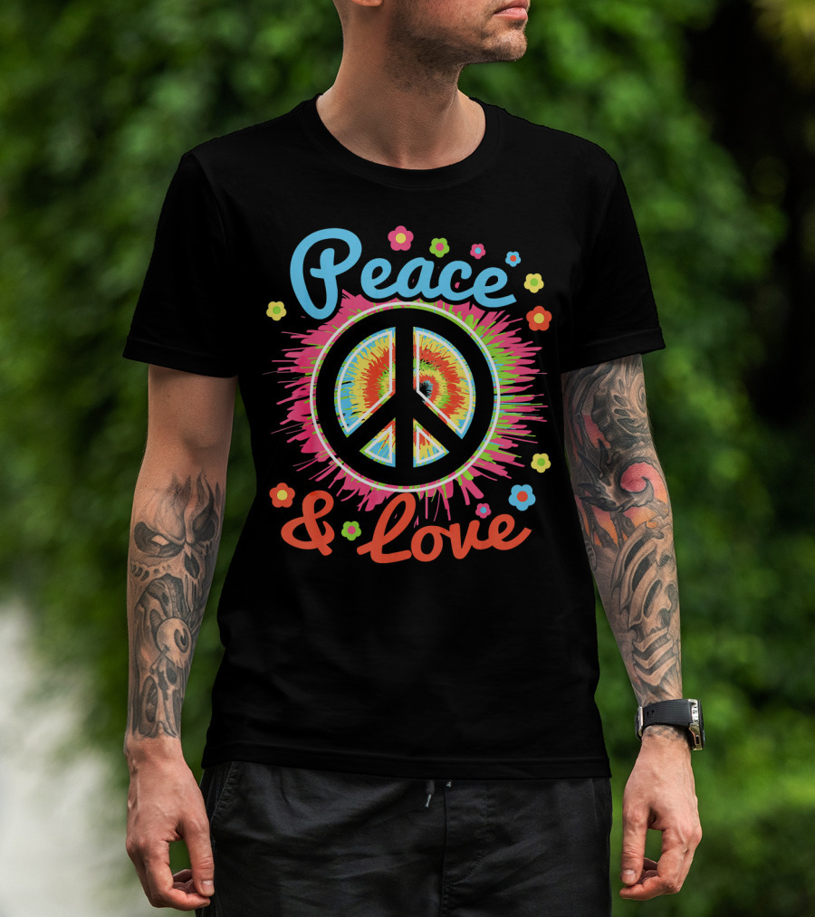 Peace And Love Tie-Dye Peace Sign With Colorful Flowers T-Shirt