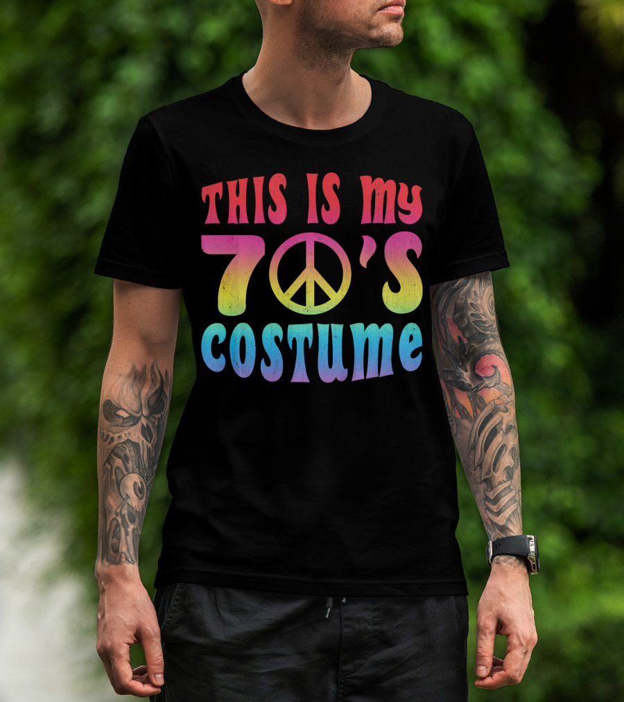 The This Is My 70's Peace Sign Costume T-shirt is designed for everyday wear and a consistent fit. Fabric is pre-shrunk ring-spun cotton with durable stitching. See the size chart below for exact measurements.