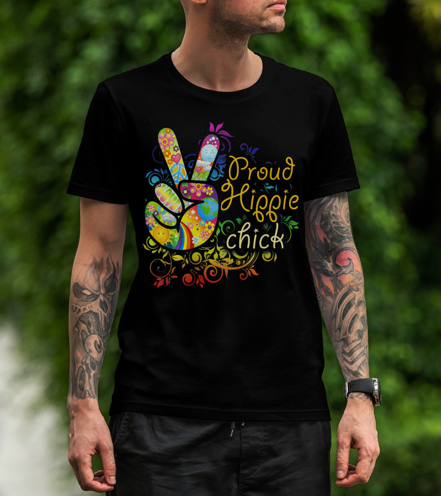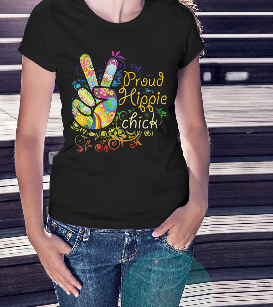 Proud Hippie Chick Peace Sign With Colorful Floral T-Shirt