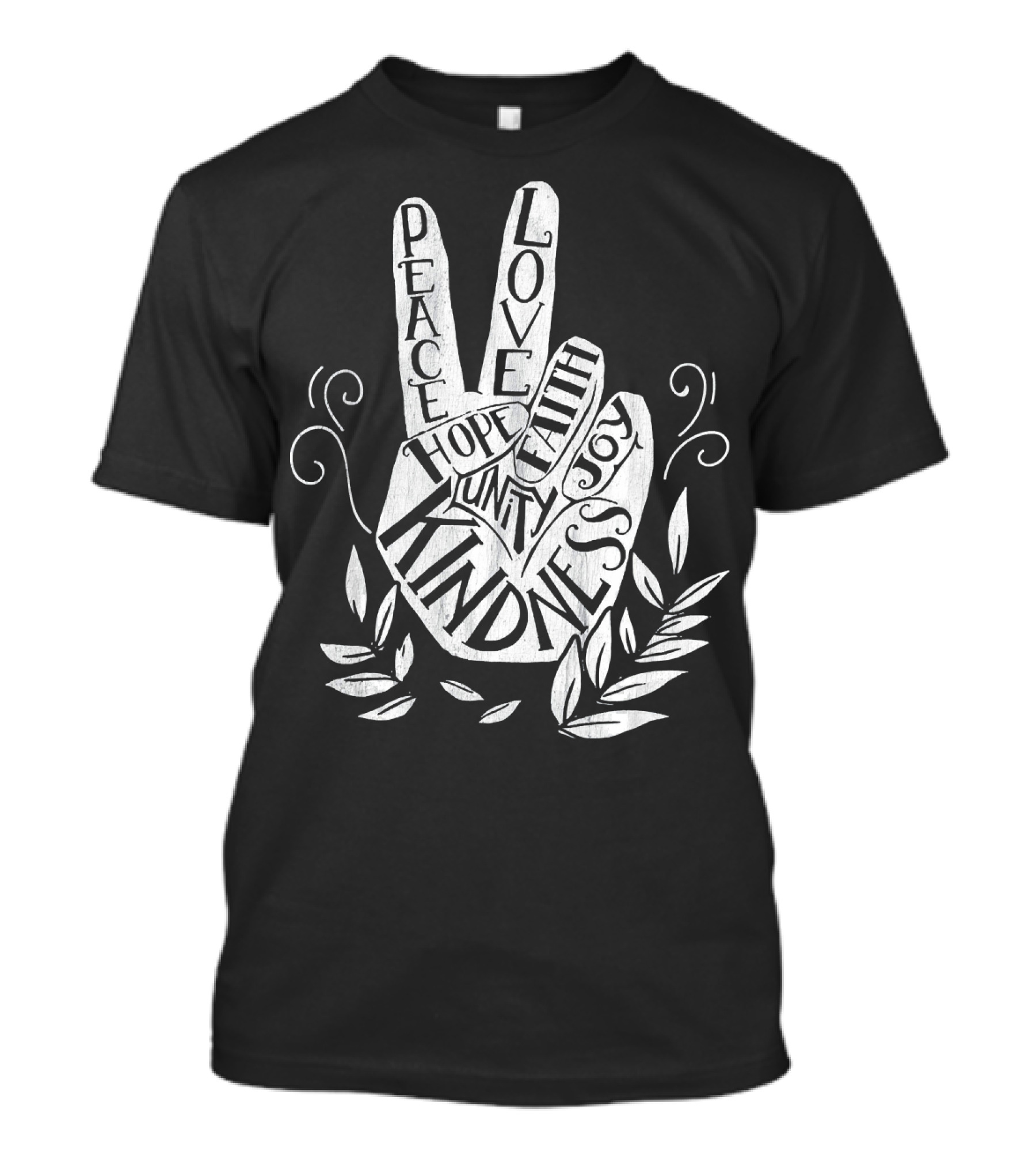 The UNITY DAY Peace Love Hope Faith Joy Kindness Anti Bullying Hand T-shirt is designed for everyday wear and a consistent fit. Fabric is pre-shrunk ring-spun cotton with durable stitching. See the size chart below for exact measurements.