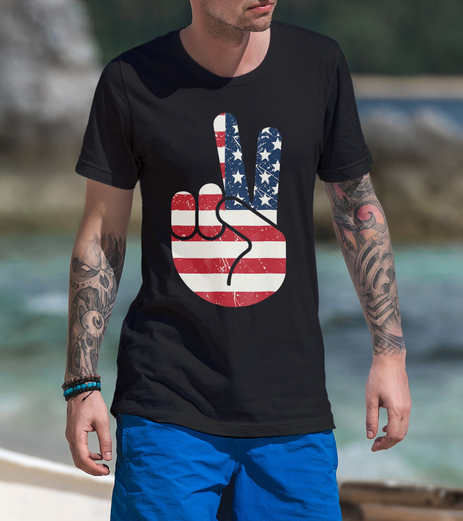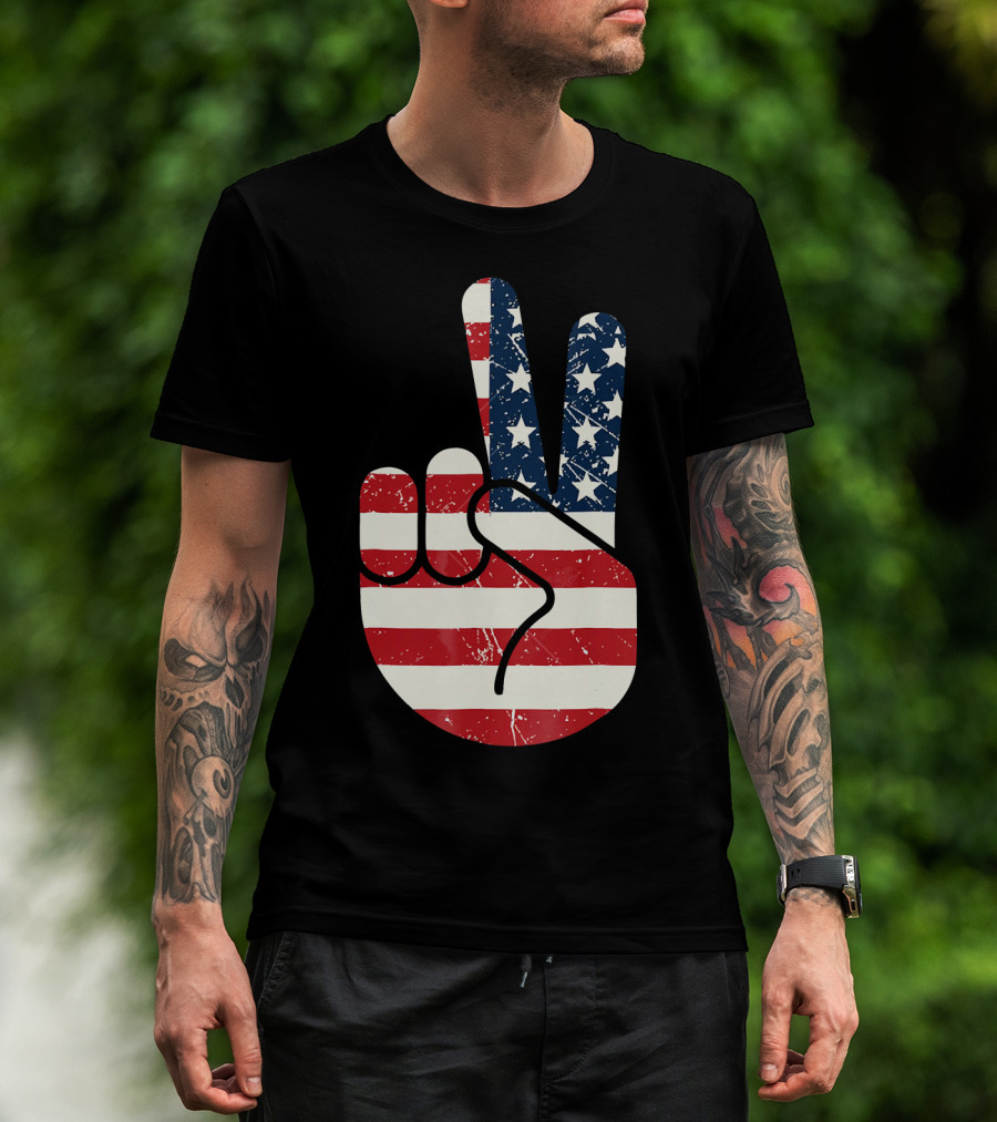 Patriotic Peace Sign American Flag Stars And Stripes USA T-Shirt