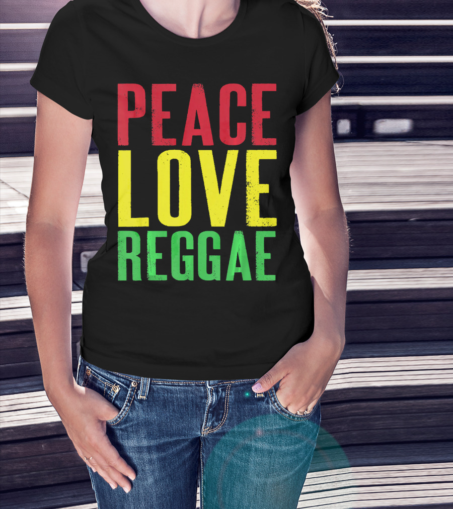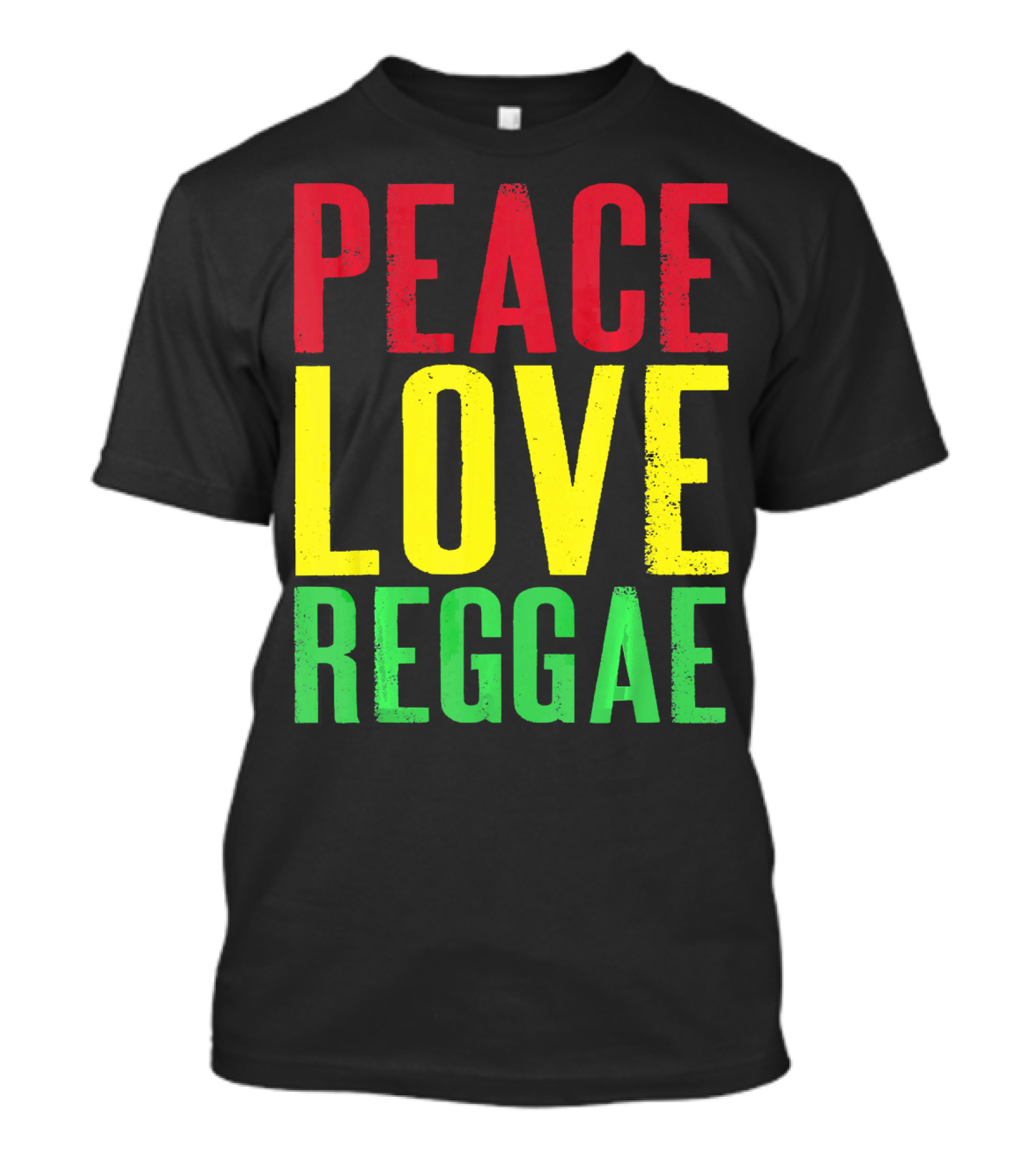 The Peace Love Reggae Jamaican Colors T-shirt is designed for everyday wear and a consistent fit. Fabric is pre-shrunk ring-spun cotton with durable stitching. See the size chart below for exact measurements.