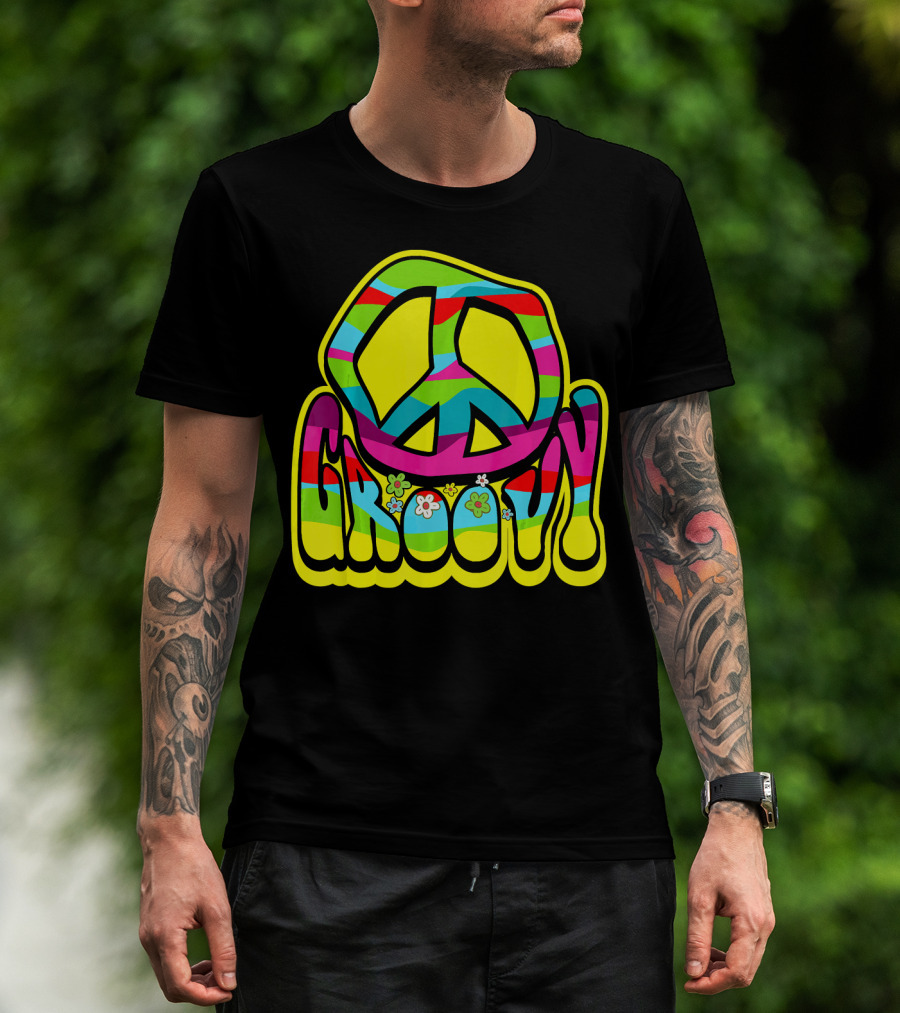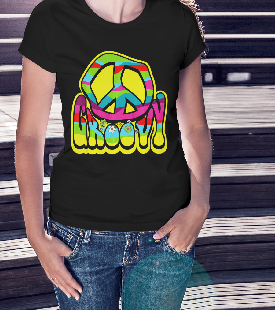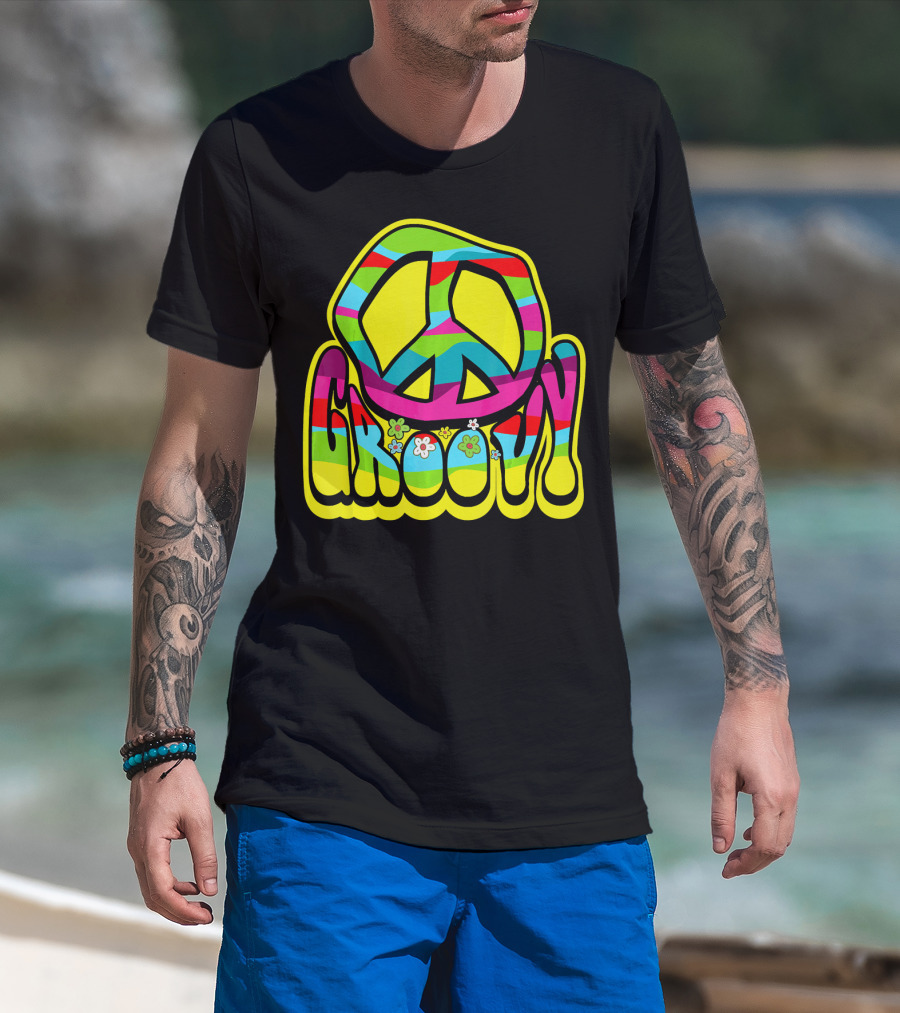 Groovy Colorful Peace Sign 60s 70s Hippie Vibes T-Shirt