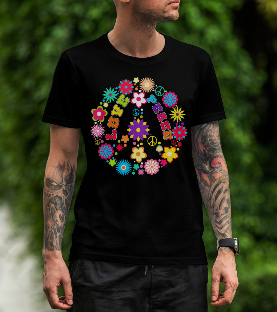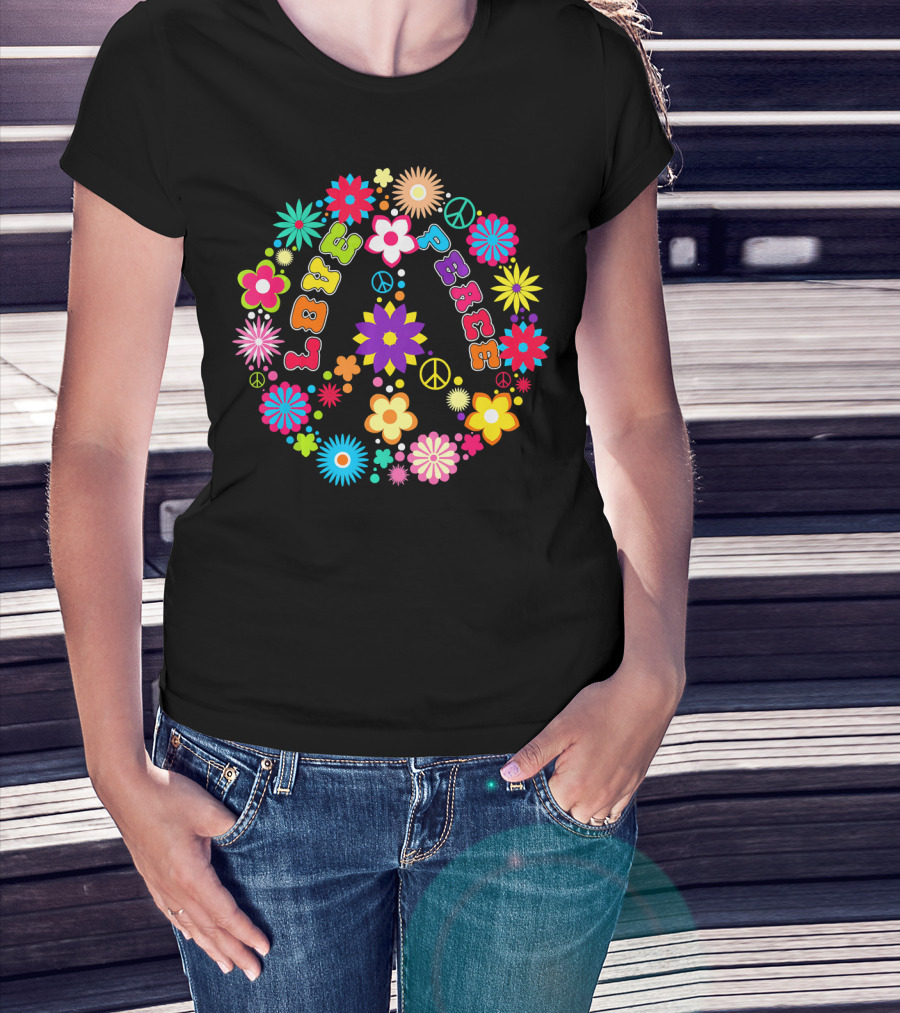 Peace Love Sign Hippie Flowers 60s 70s Groovy Floral Vibes T-Shirt