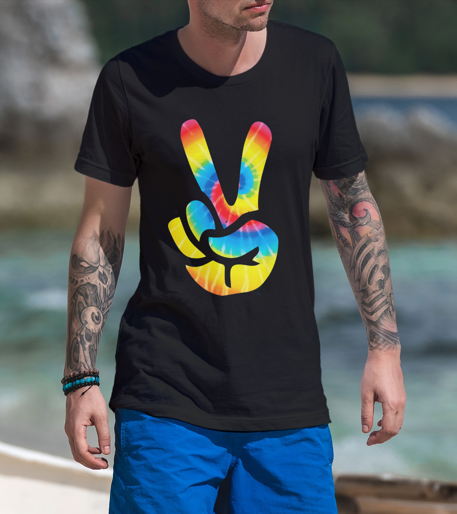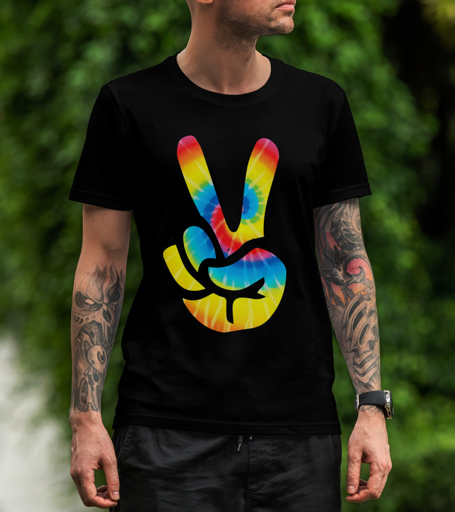 Tie Dye Peace Sign Hand V Symbol Rainbow Psychedelic T-Shirt