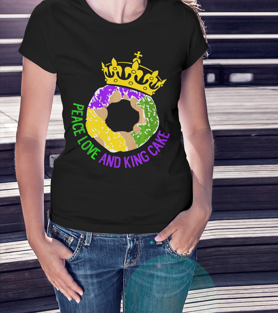 Peace Love And King Cake Mardi Gras New Orleans T-Shirt