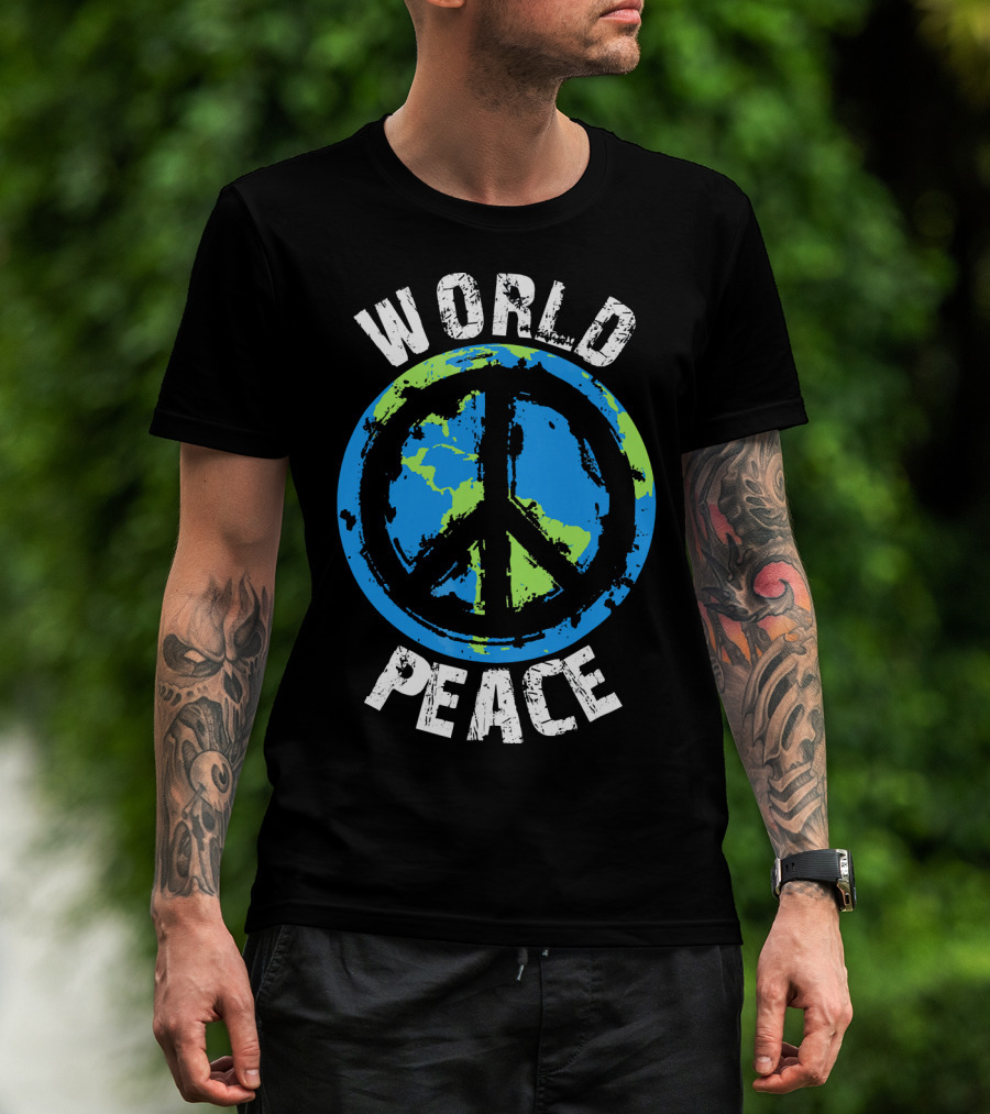 The World Peace Global Peace Earth T-shirt is designed for everyday wear and a consistent fit. Fabric is pre-shrunk ring-spun cotton with durable stitching. See the size chart below for exact measurements.