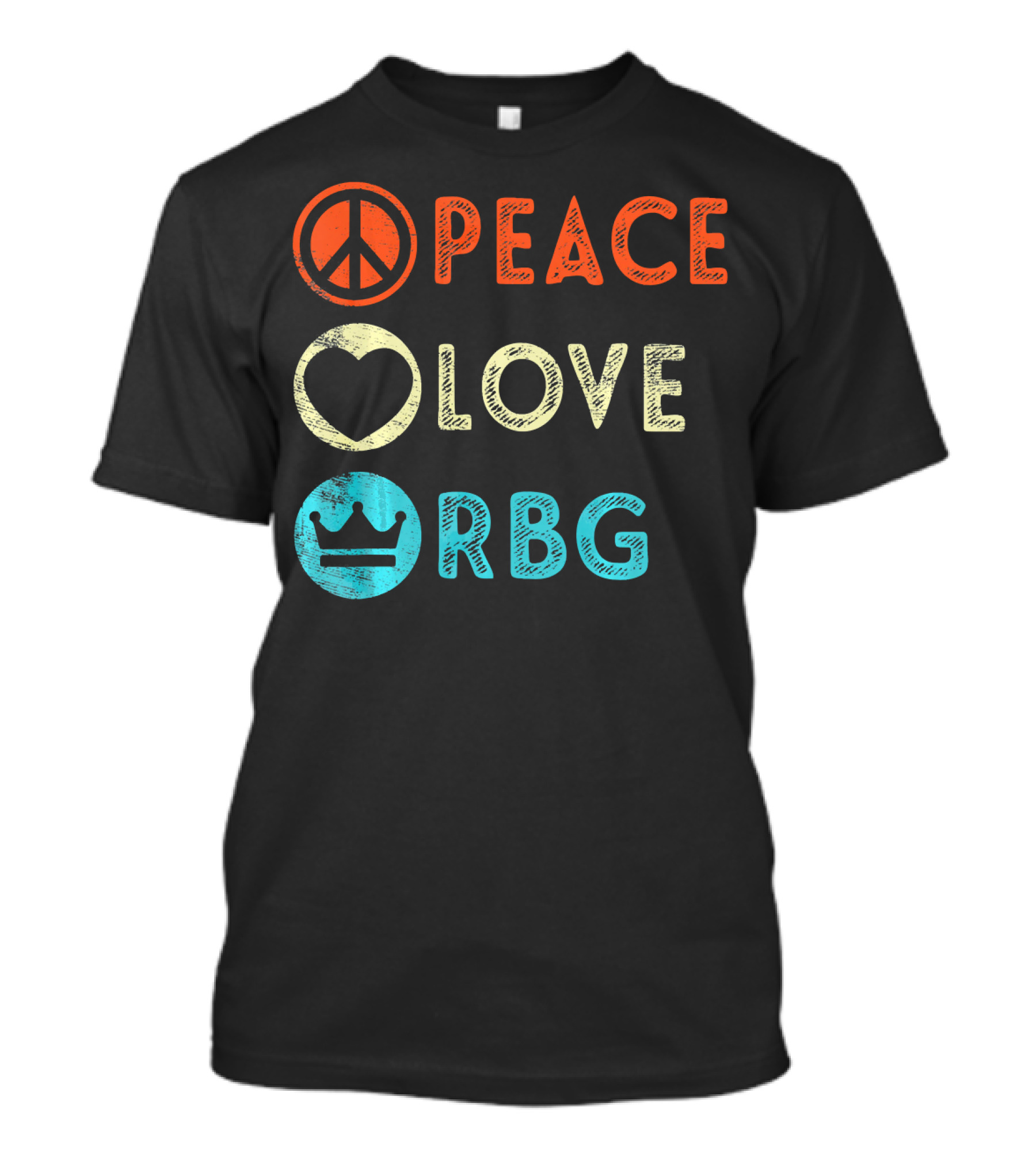 The Peace Love RBG Ruth Bader Ginsburg Crown T-shirt is designed for everyday wear and a consistent fit. Fabric is pre-shrunk ring-spun cotton with durable stitching. See the size chart below for exact measurements.