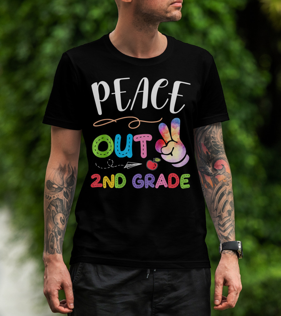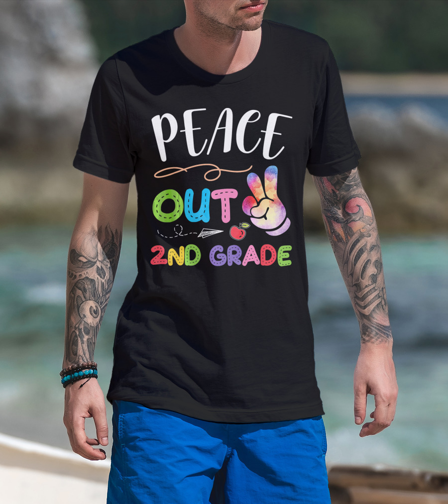 Peace Out 2nd Grade Rainbow Peace Sign Retro School Graduation T-Shirt