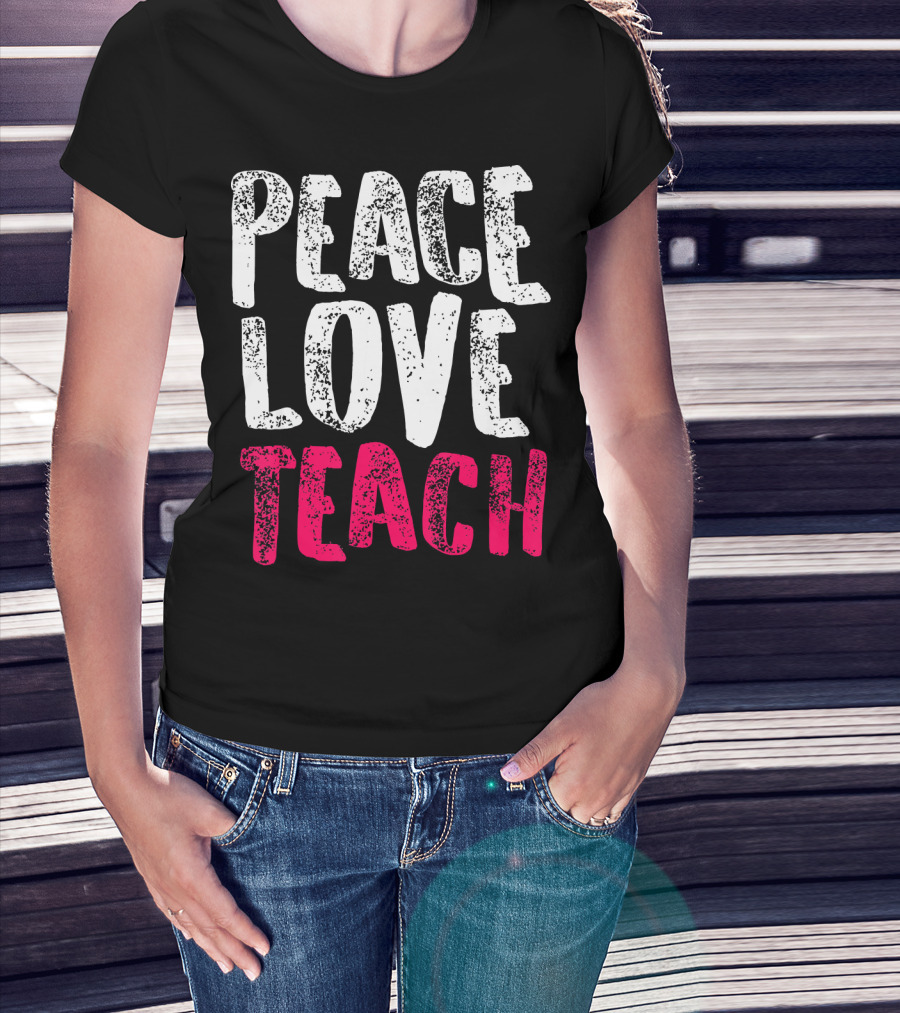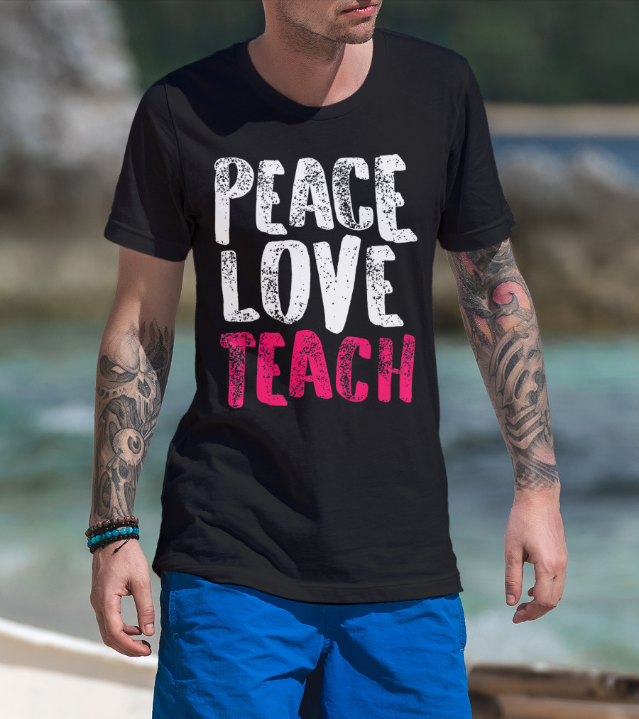 Peace Love Teach Pink Text For Teachers T-Shirt