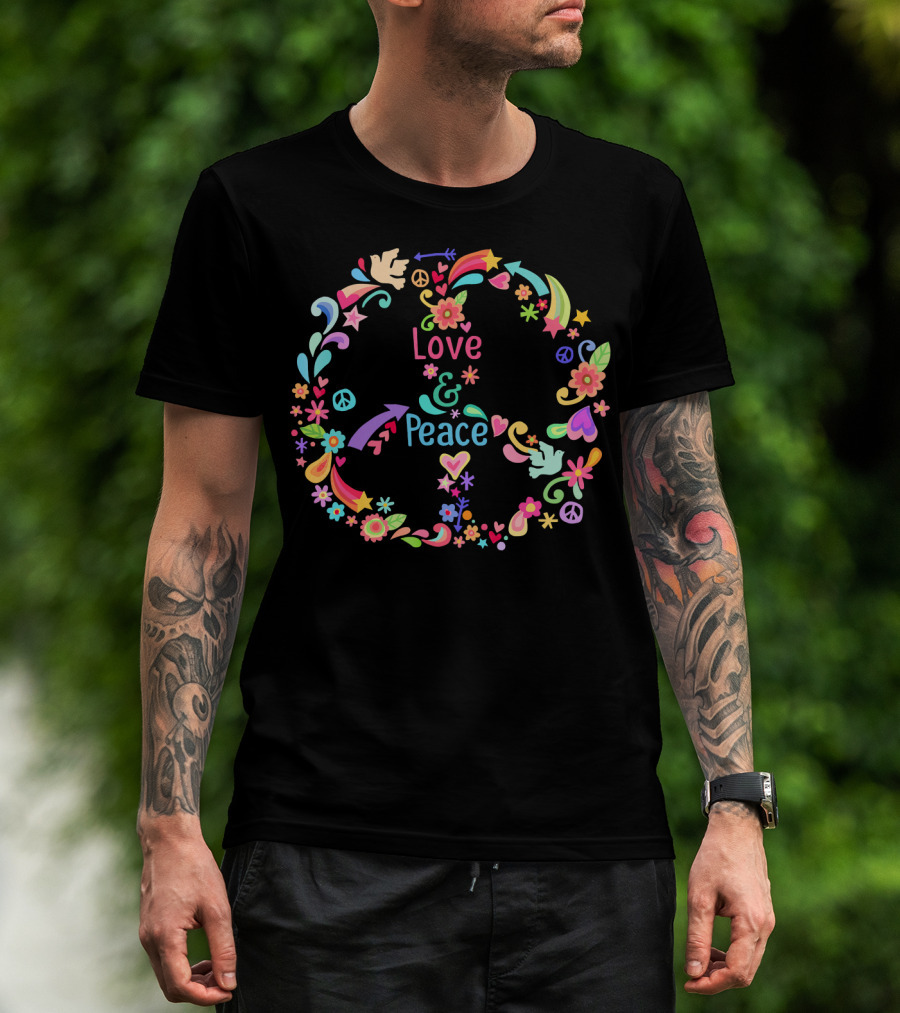Love And Peace Hippie 60s 70s Floral T-Shirt