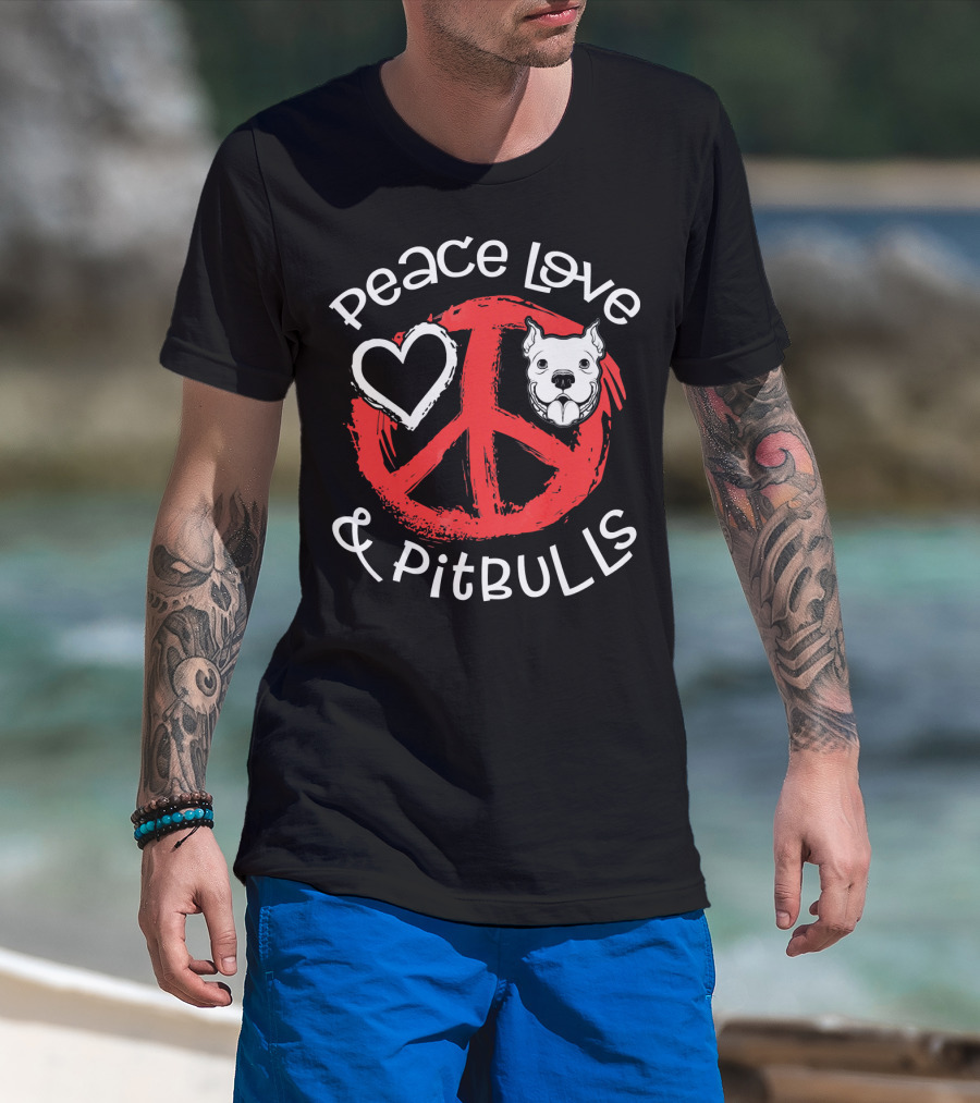 Peace Love And Pitbulls Heart Dog Lovers T-Shirt