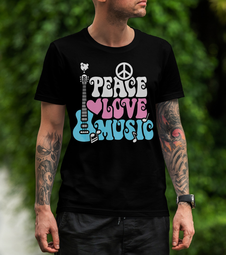 Peace Love Music Pastels With Guitar And Peace T-Shirt