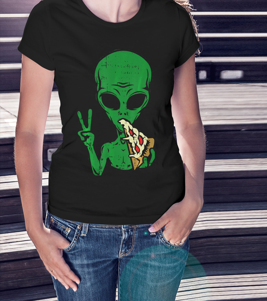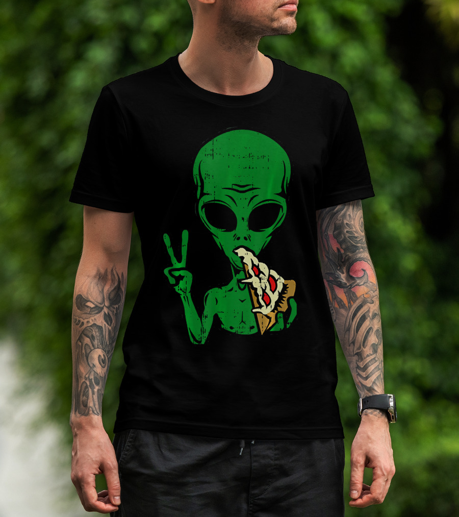 Alien Pizza Eating Peace Funny Space Are T-Shirt