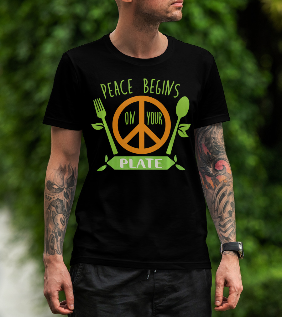 Peace Begins On Your Plate With Vegan Vegetar Symbols T-Shirt