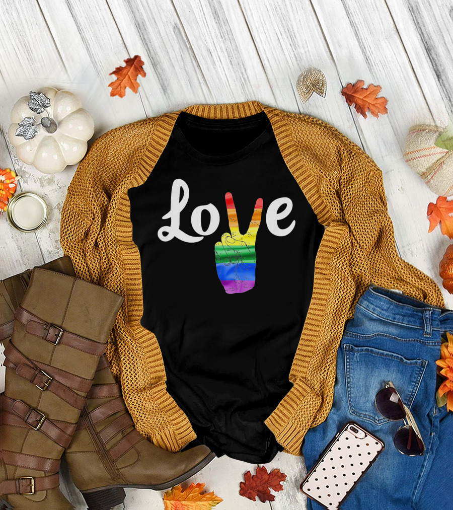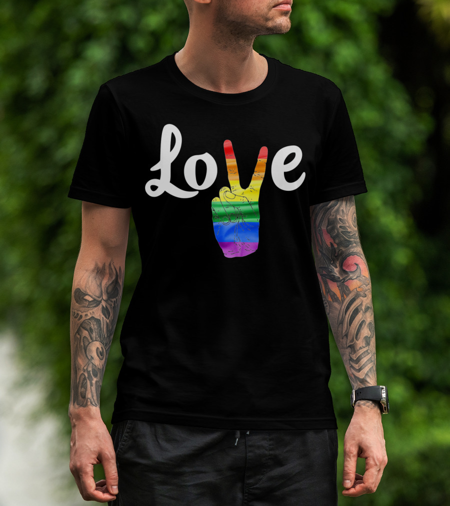 LOVE Peace Sign Rainbow Gay Pride T-Shirt