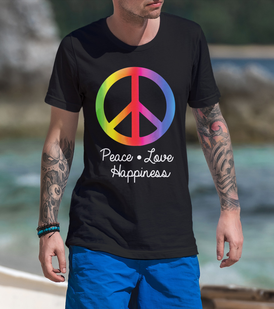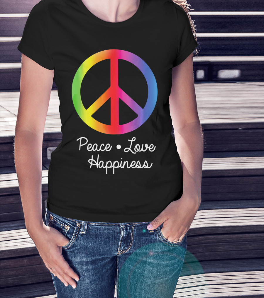 Peace Love Happiness Rainbow Peace Sign Hippie T-Shirt