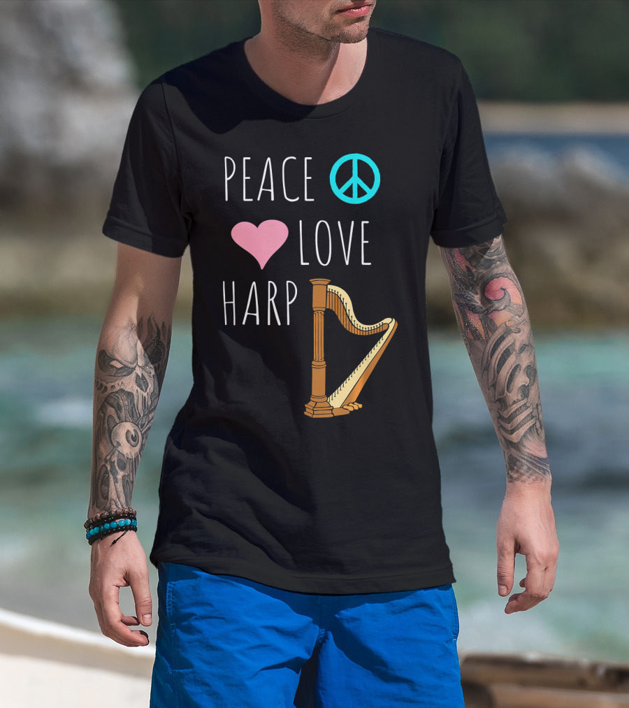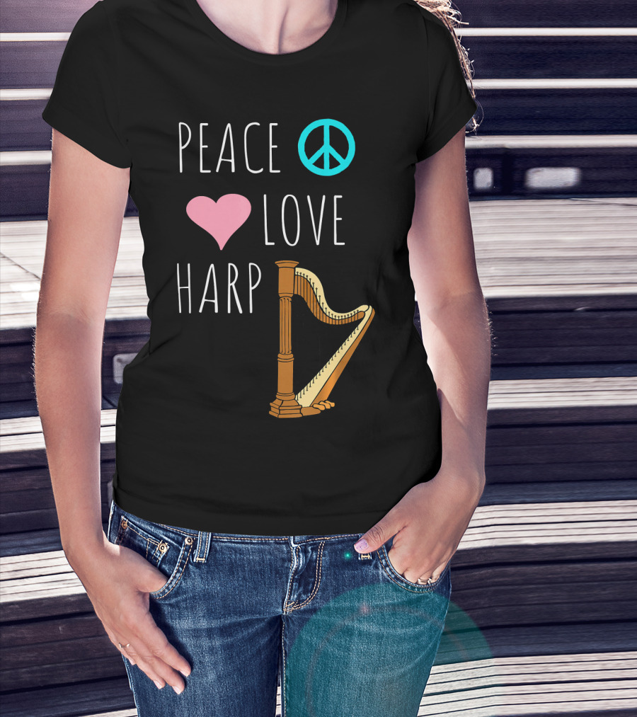 The Peace Love Harp Player Musician Harpist T-shirt is designed for everyday wear and a consistent fit. Fabric is pre-shrunk ring-spun cotton with durable stitching. See the size chart below for exact measurements.