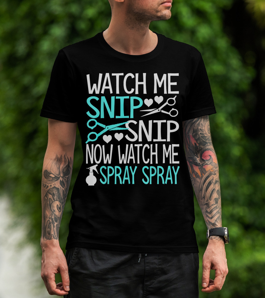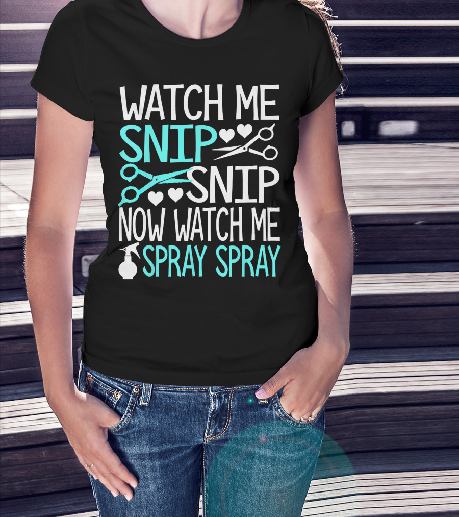 Watch Me Snip Snip Now Watch Me Spray Spray Hearts Scissors Bottle T-Shirt