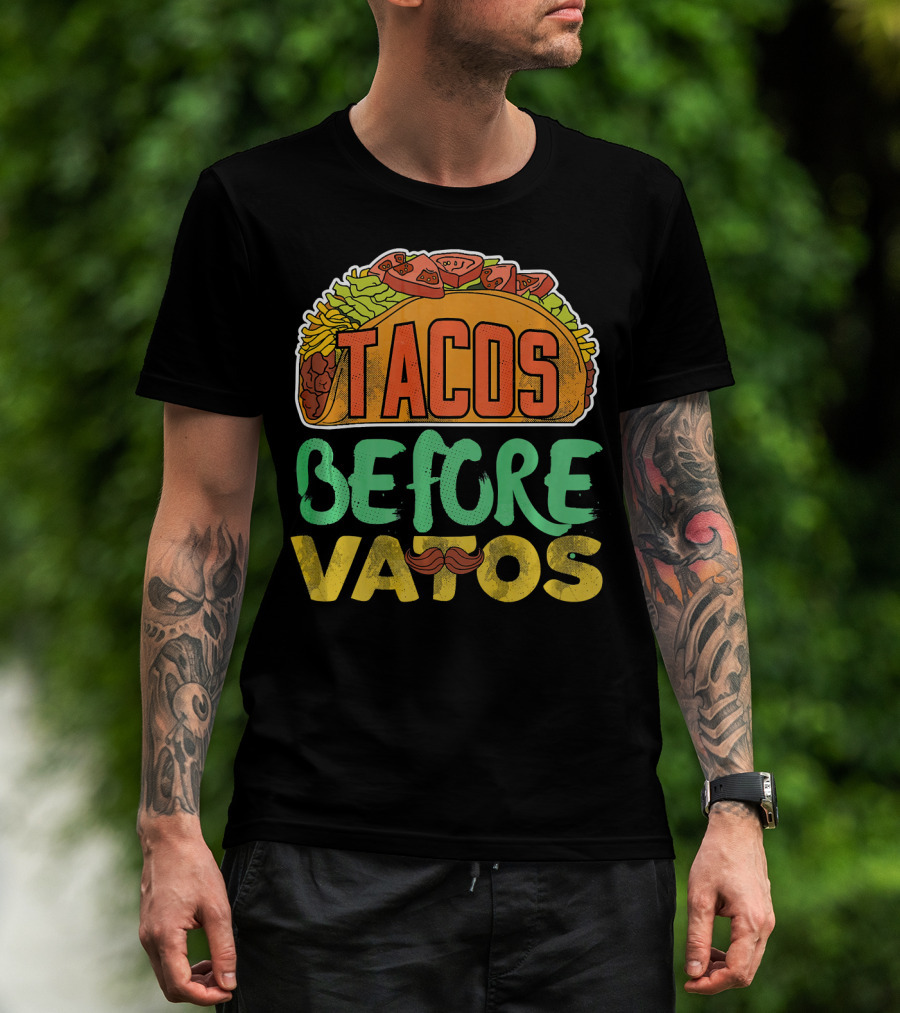 Tacos Before Vatos Funny Taco Tuesday Mustache T-Shirt