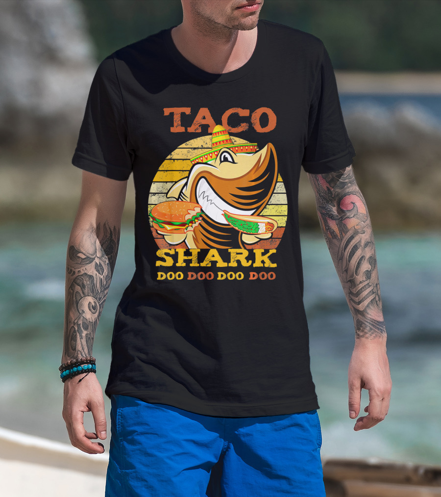 The Taco Shark Doo Doo Doo Doo Halloween Baby Thanksgiving Women Men T-shirt is designed for everyday wear and a consistent fit. Fabric is pre-shrunk ring-spun cotton with durable stitching. See the size chart below for exact measurements.