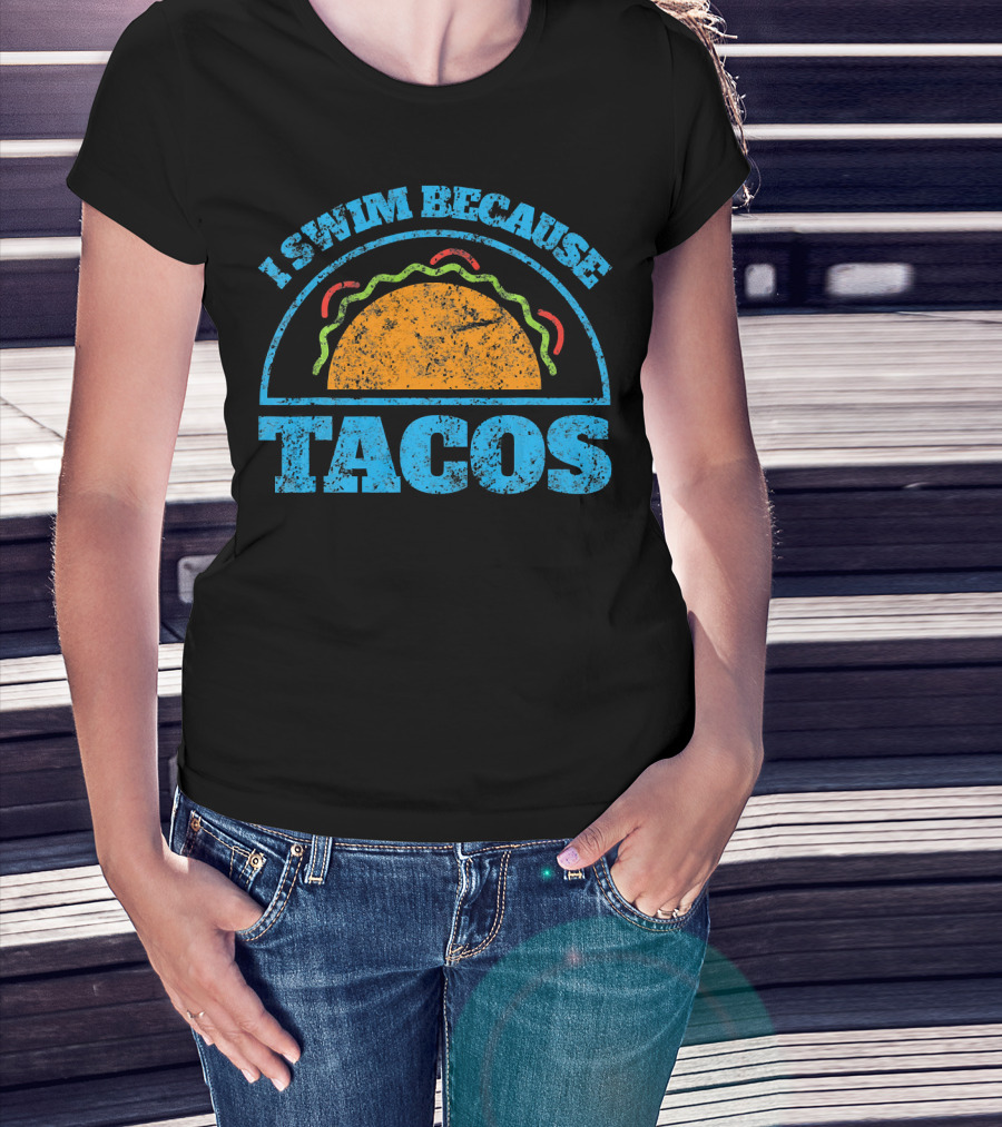 Vintage I Swim Because Tacos Funny Swimm Taco T-Shirt