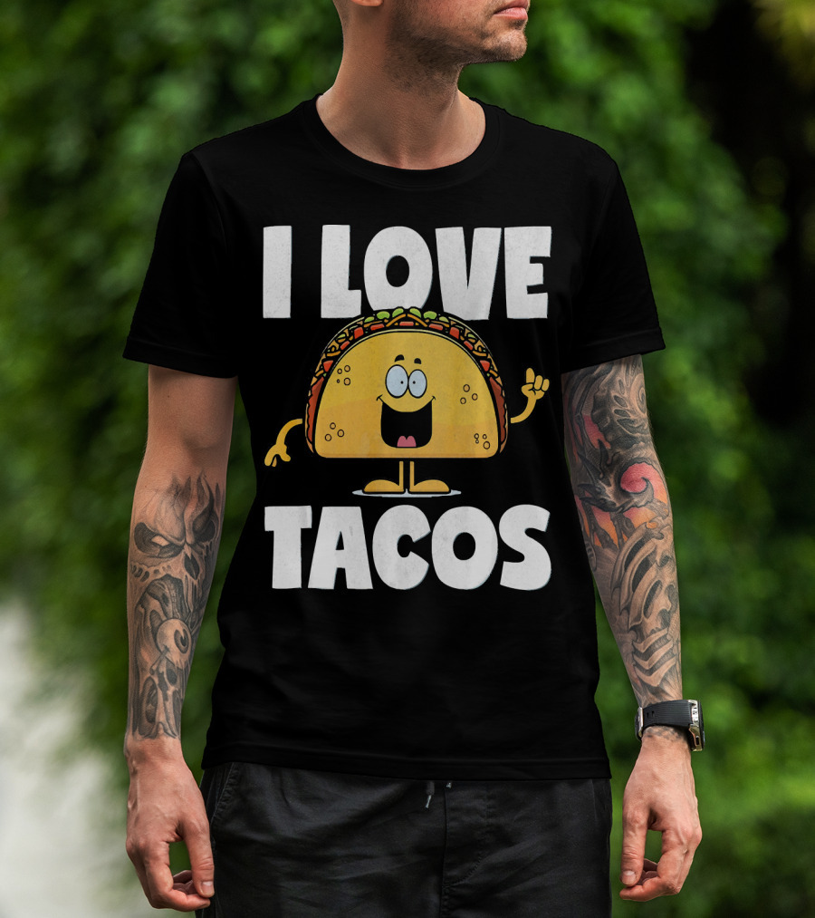 I Love Tacos Funny Vintage Retro Cute Taco Cartoon T-Shirt