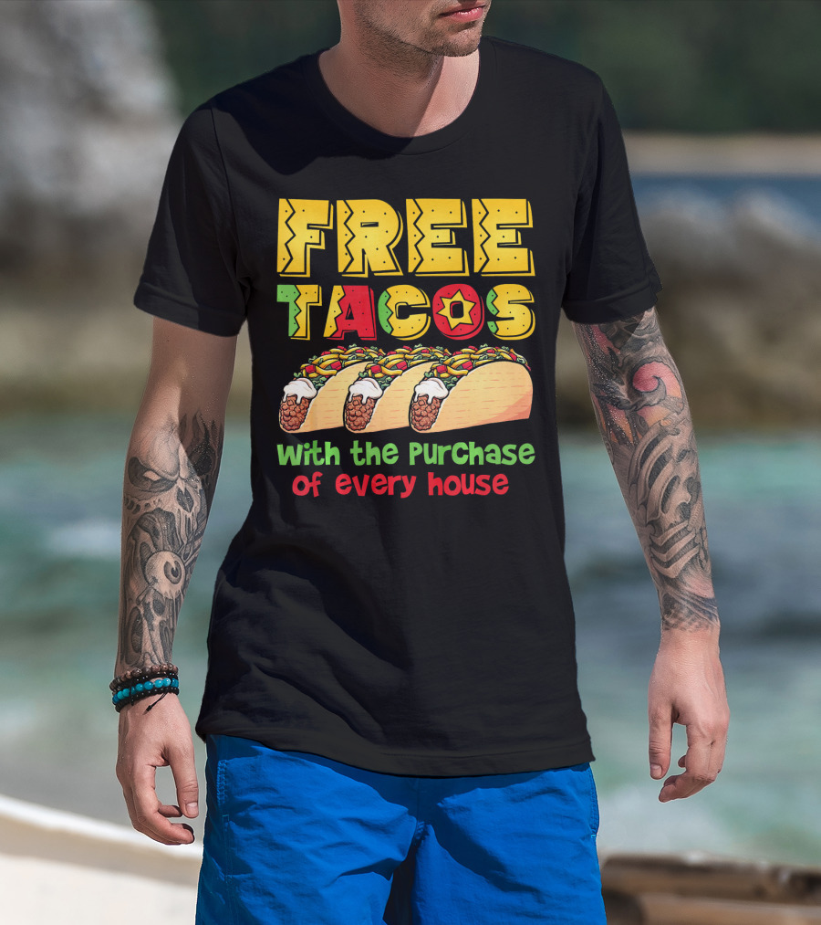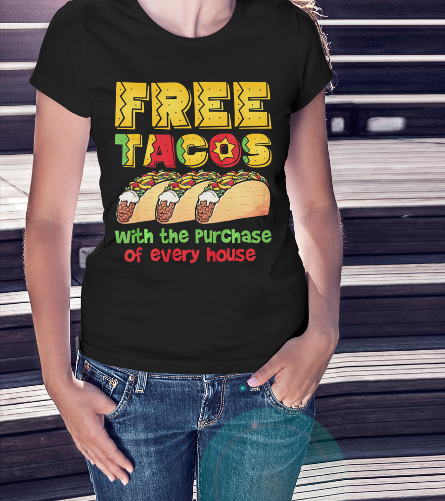 The Free Tacos with the Purchase of Every House T-shirt is designed for everyday wear and a consistent fit. Fabric is pre-shrunk ring-spun cotton with durable stitching. See the size chart below for exact measurements.
