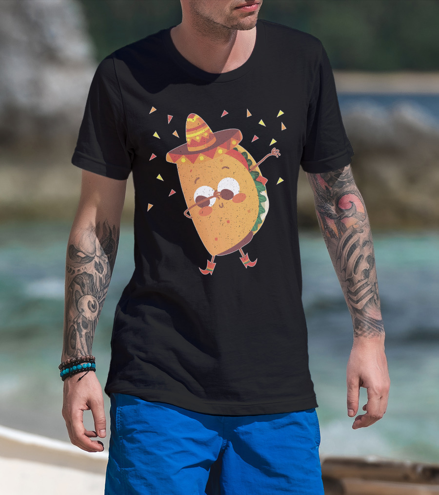 Funny Mexican Dabbing Taco Sombrero Party T-Shirt