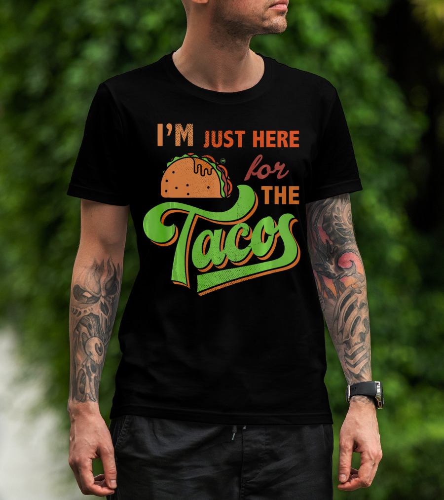 The I'm Just Here for the Tacos T-shirt is designed for everyday wear and a consistent fit. Fabric is pre-shrunk ring-spun cotton with durable stitching. See the size chart below for exact measurements.
