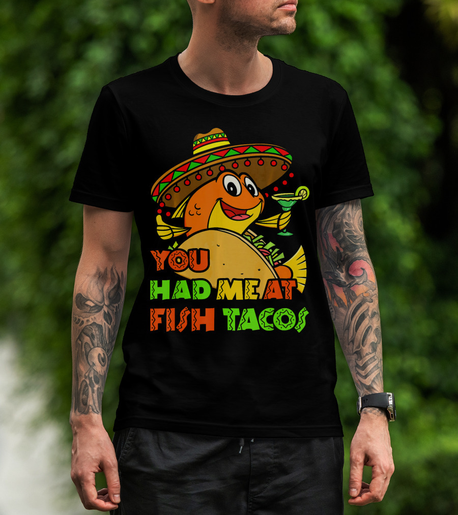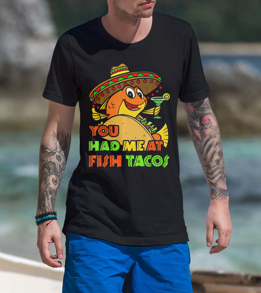You Had Me At Fish Tacos Sombrero-Wearing Fish With Margaritas T-Shirt