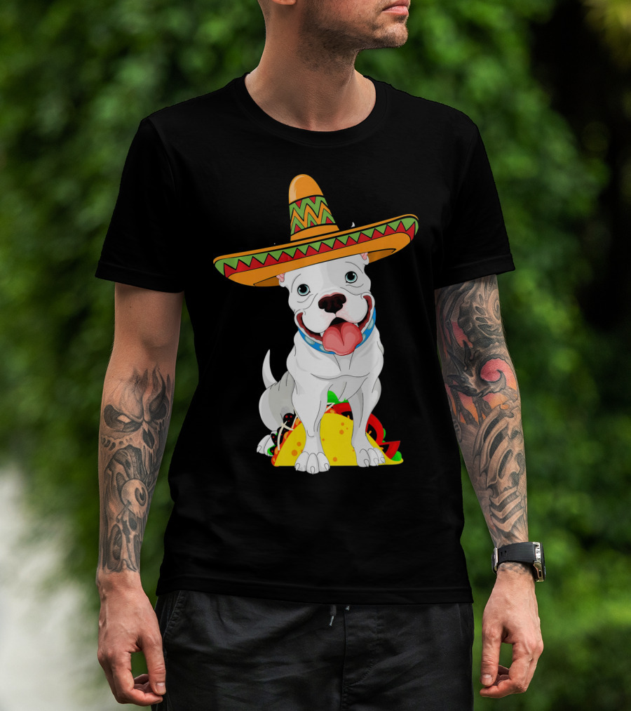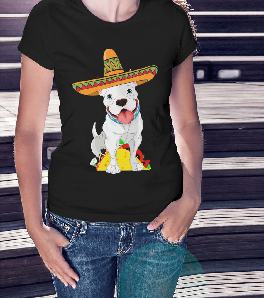Cinco De Mayo Pitbull With Sombrero And Tacos T-Shirt