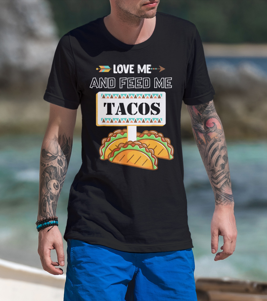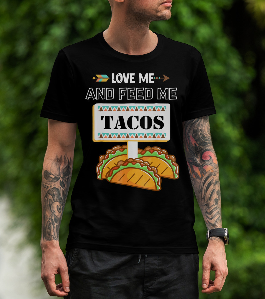 The LOVE ME AND FEED ME TACOS T-shirt is designed for everyday wear and a consistent fit. Fabric is pre-shrunk ring-spun cotton with durable stitching. See the size chart below for exact measurements.