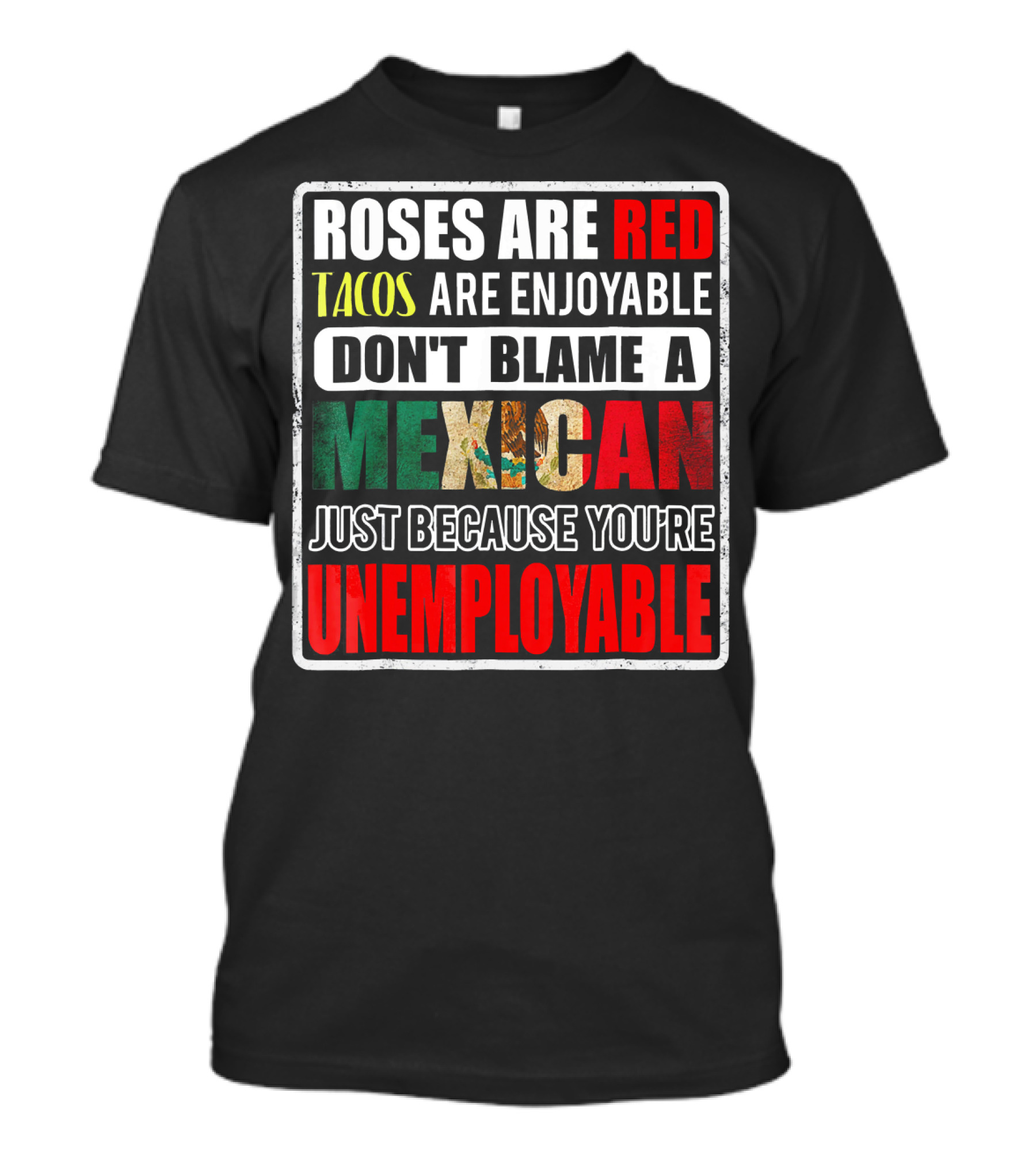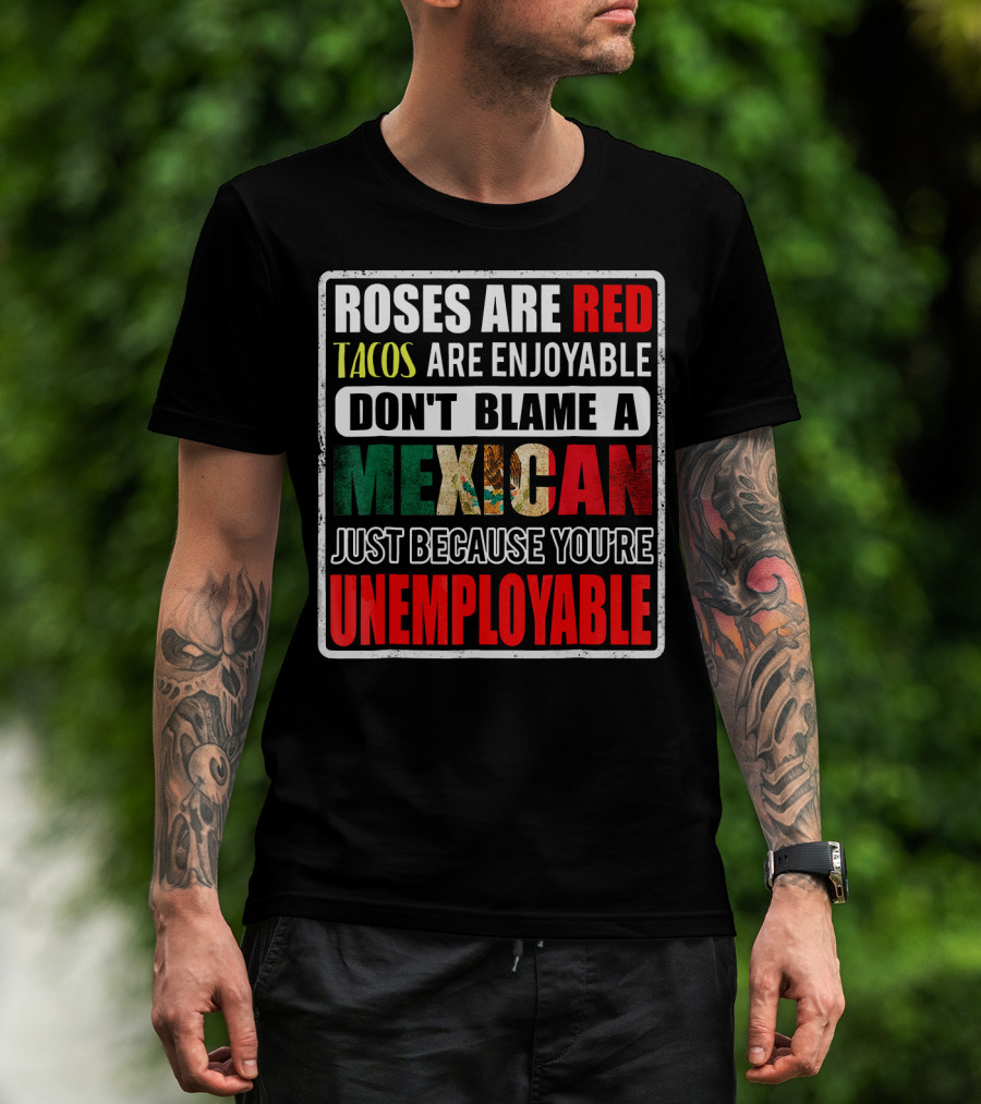 Roses Are Red Tacos Are Enjoyable Don't Blame A Mexican Just Because You're Unemployable T-Shirt