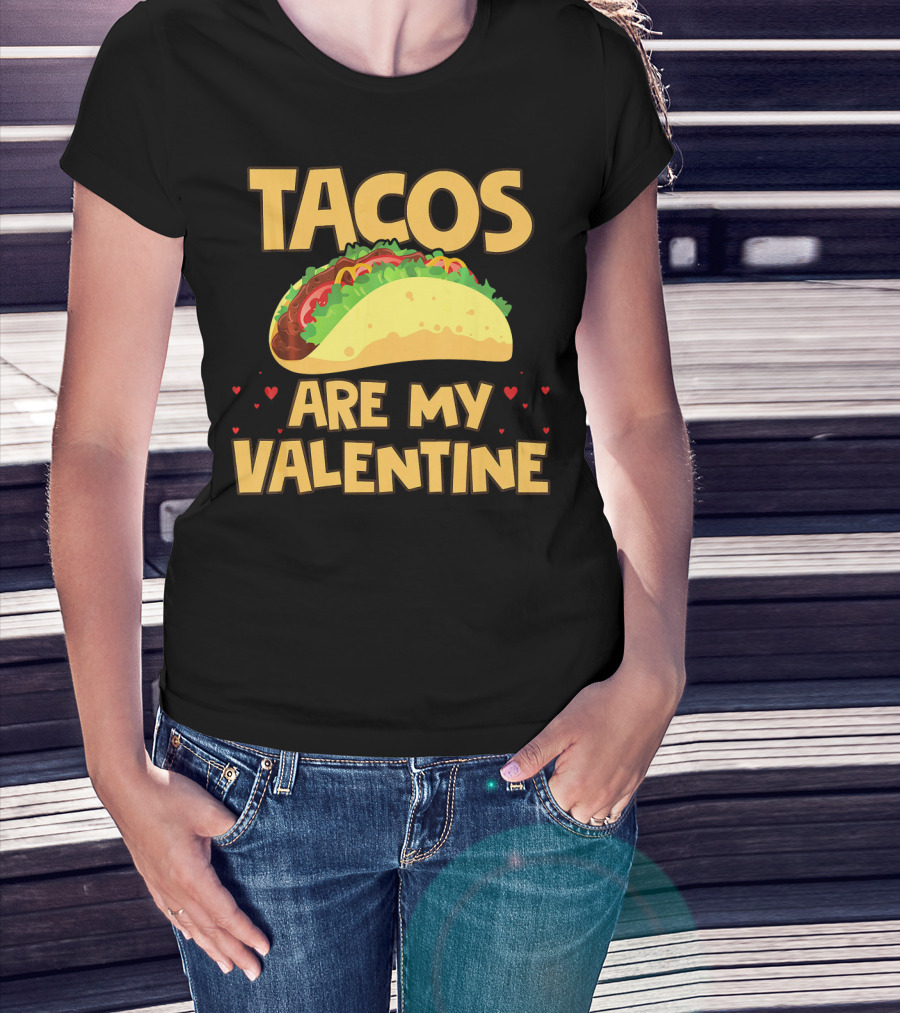Tacos Are My Valentine Funny Food With Hearts And Taco T-Shirt