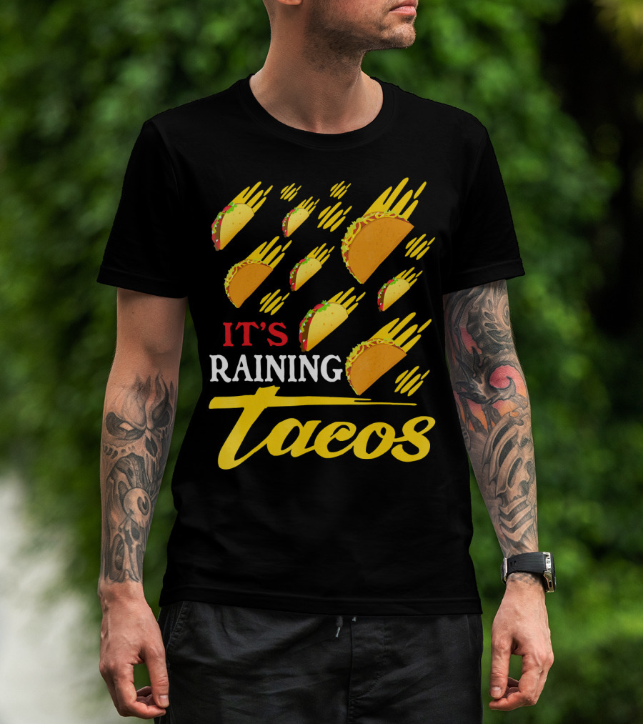 The It's Raining Tacos Funny Cartoon Food Meme T-shirt is designed for everyday wear and a consistent fit. Fabric is pre-shrunk ring-spun cotton with durable stitching. See the size chart below for exact measurements.