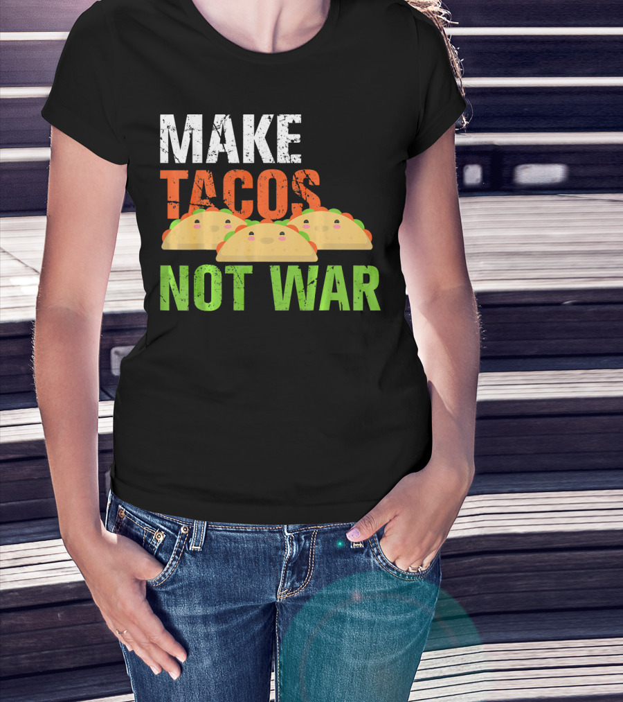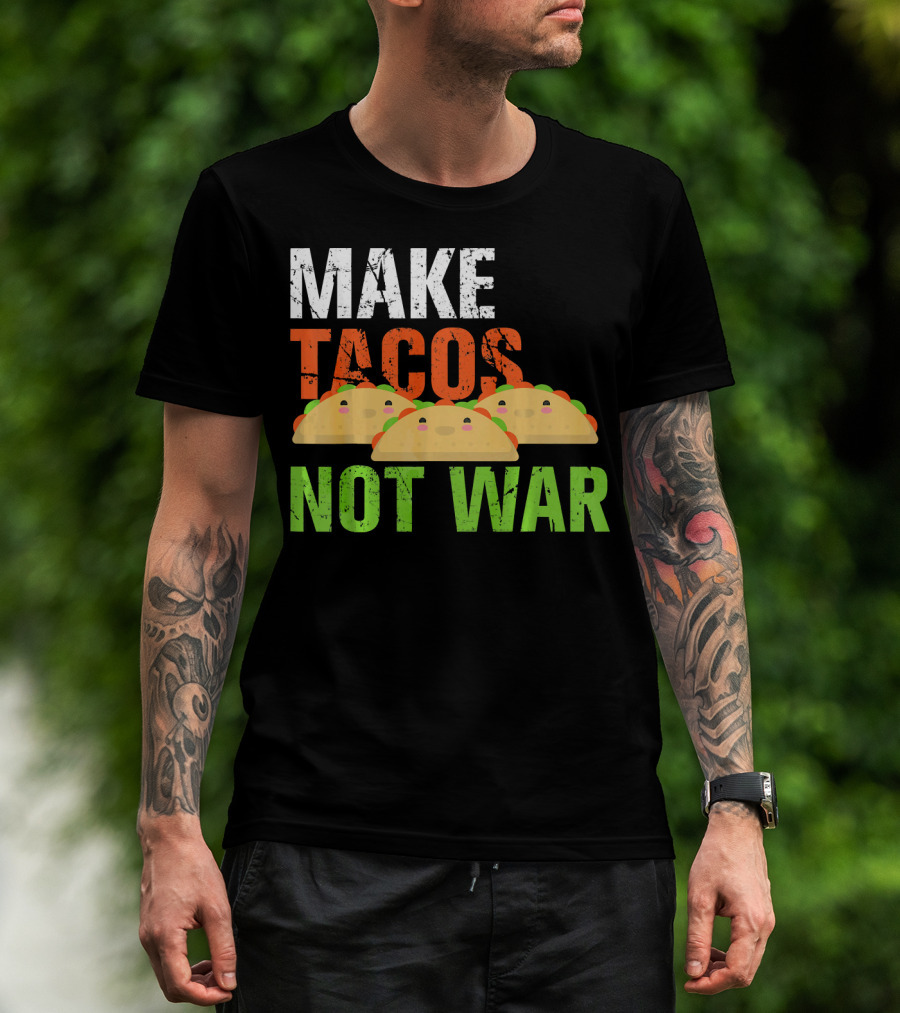 Make Tacos Not War Funny Mexic Tacos With Three Tacos T-Shirt