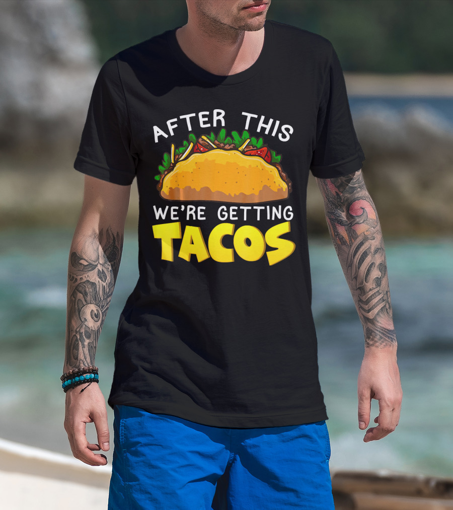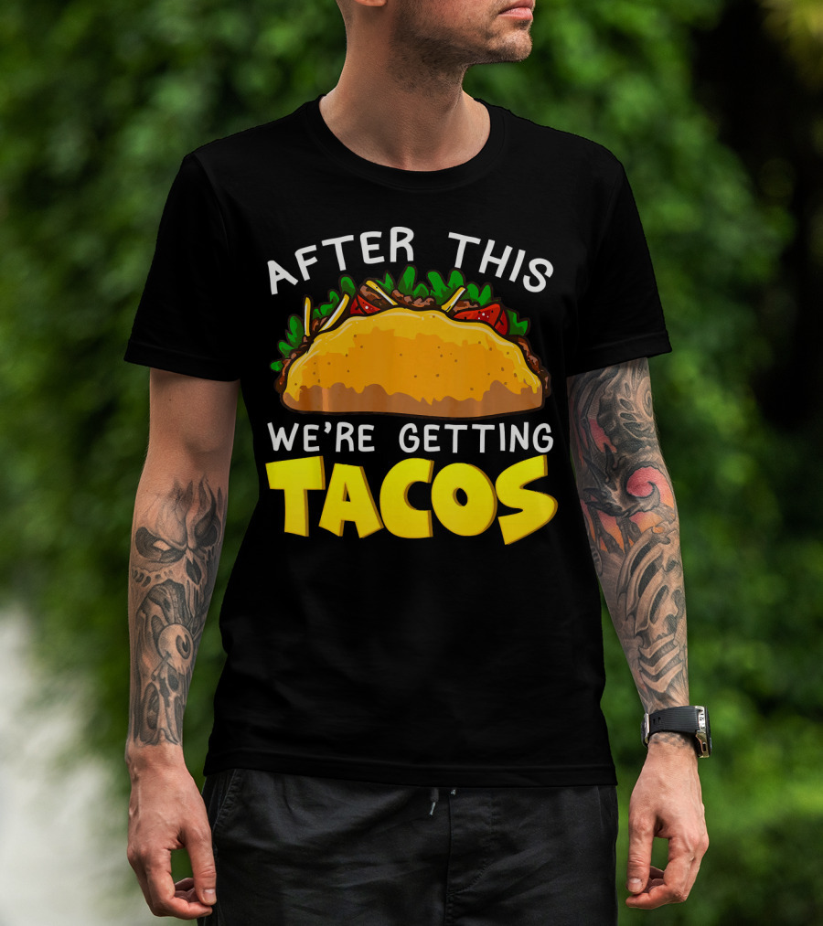 The After This We're Getting Tacos T-shirt is designed for everyday wear and a consistent fit. Fabric is pre-shrunk ring-spun cotton with durable stitching. See the size chart below for exact measurements.