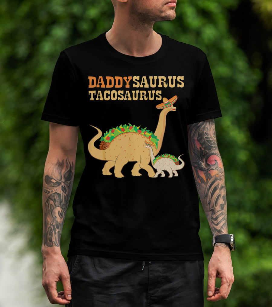Daddysaurus Tacosaurus Dinosaur Wearing Sombrero With Tacos T-Shirt