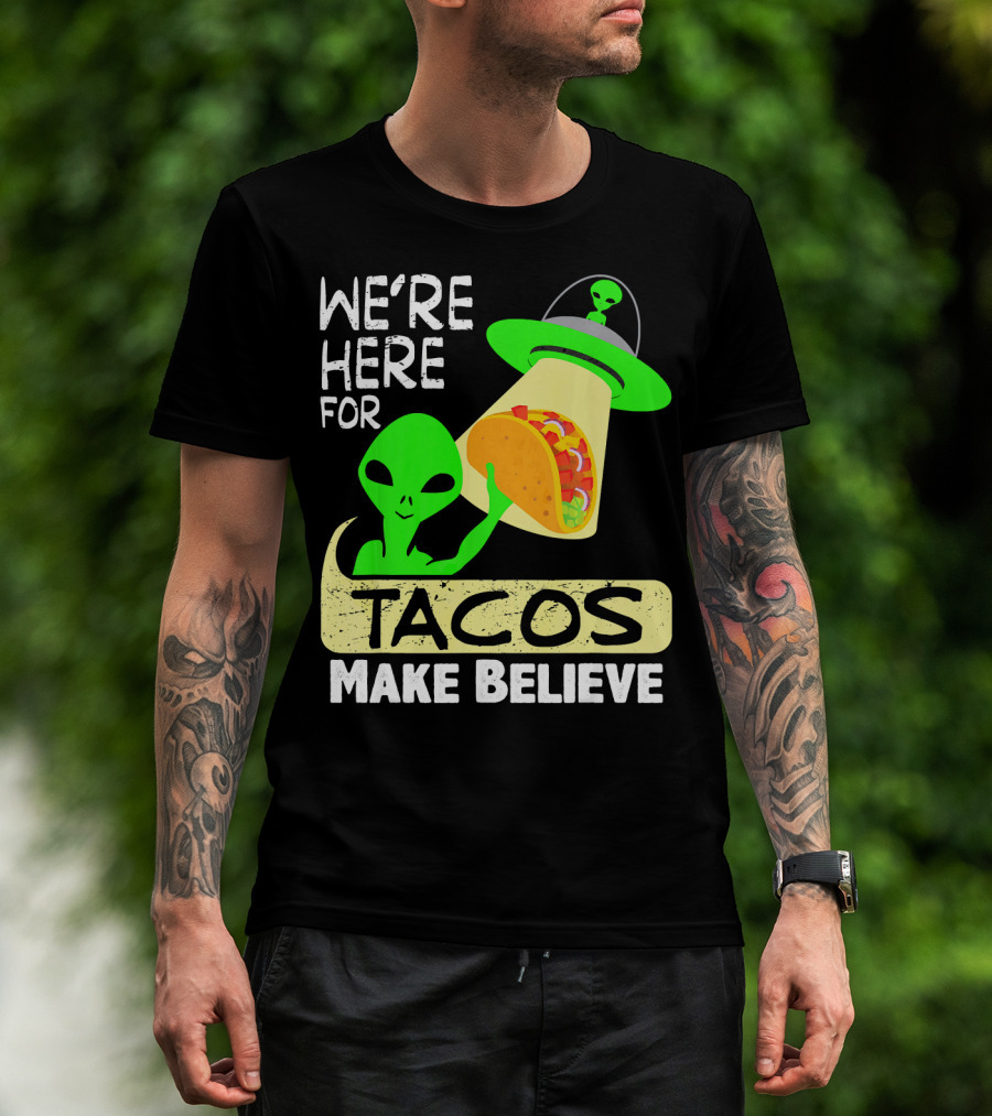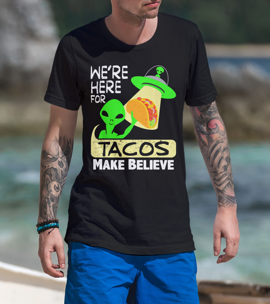 We're Here For Tacos Make Believe Aliens UFO T-Shirt