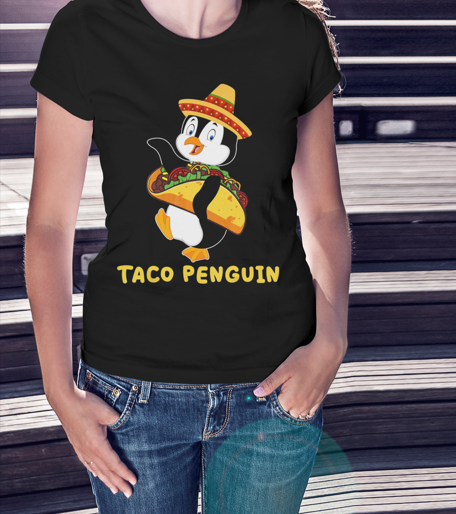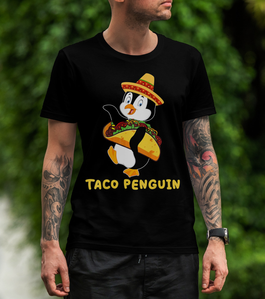 Taco Penguin Wearing Sombrero Celebrating Cinco De Mayo Fiesta T-Shirt