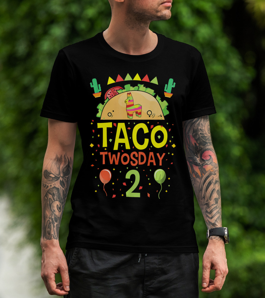 Taco Twosday 2 Two Year Old Boy Girl Cactus Balloon Party T-Shirt