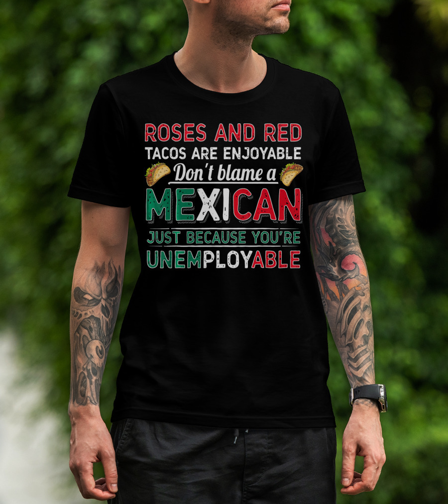 Roses And Red Tacos Are Enjoyable Don't Blame A Mexican Just Because You're Unemployable T-Shirt