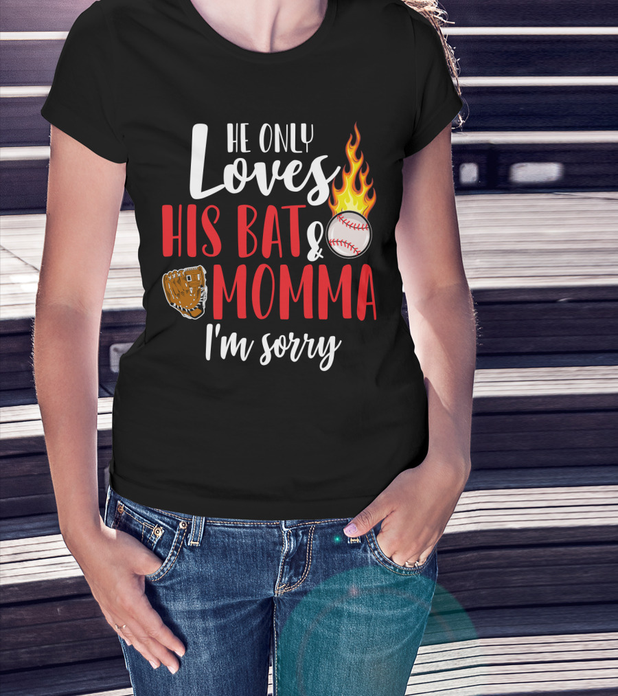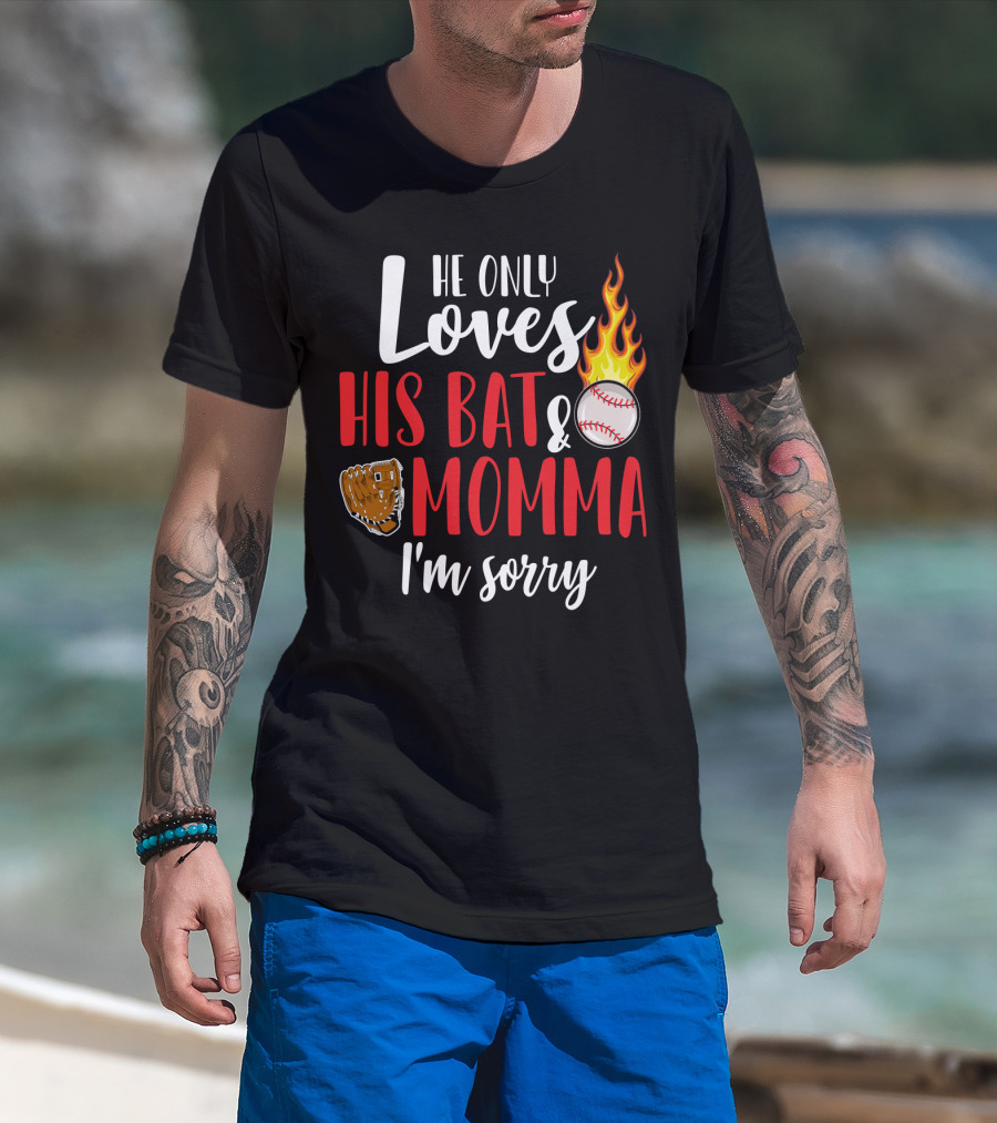 He Only Loves His Bat And Momma I'm Sorry Baseball Glove Flame Ball T-Shirt